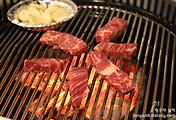 이젠 준비가 다 된건가요. ~~ 배속에서 쪼르륵 아우성이네요.ㅋㅋ 급속냉동해서 3~4일 숙성시킨 한우등심이 무채를 가운데 두고 익어 가는데 침이 고여서 혼났어요.