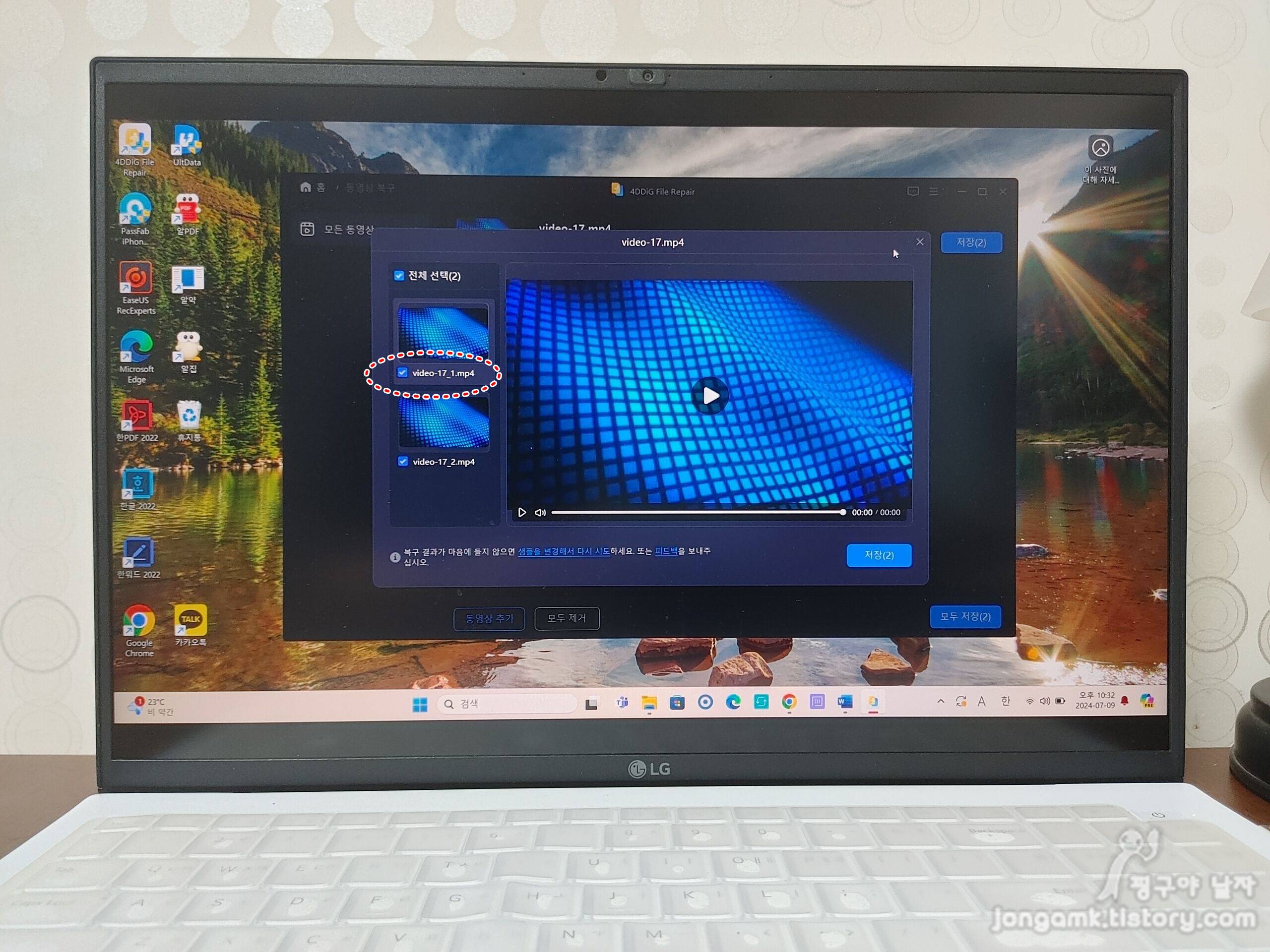 다음은 손생된 동영상을 개별적으로 복구를 하던지 아니면 하단의 모두복구 버튼을 눌러 복구를 하면 됩니다. 4DDiG File Repair(포디딕 파일 복원 프로그램) 사용법 너무 쉽죠.
