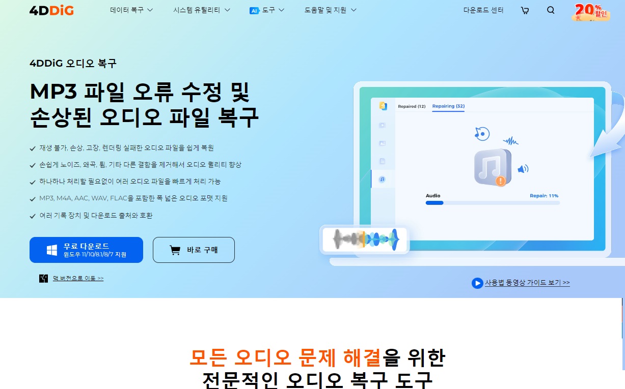 4DDiG File Repair(포디딕 파일 복원 프로그램) 홈페이지