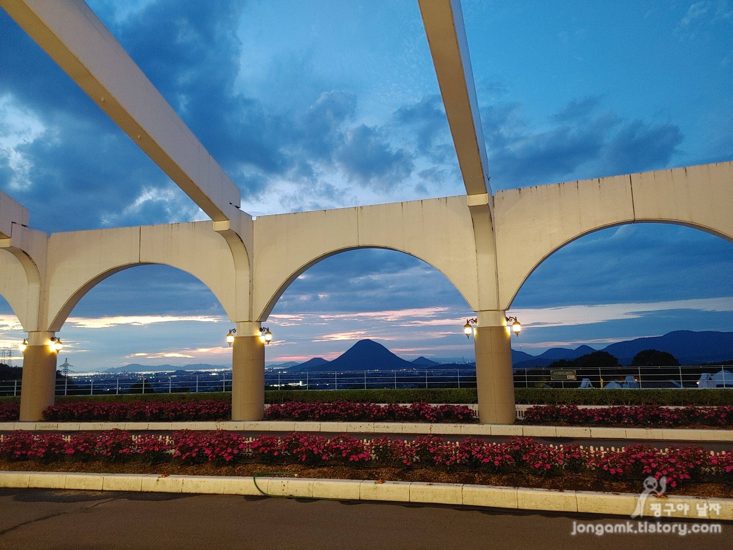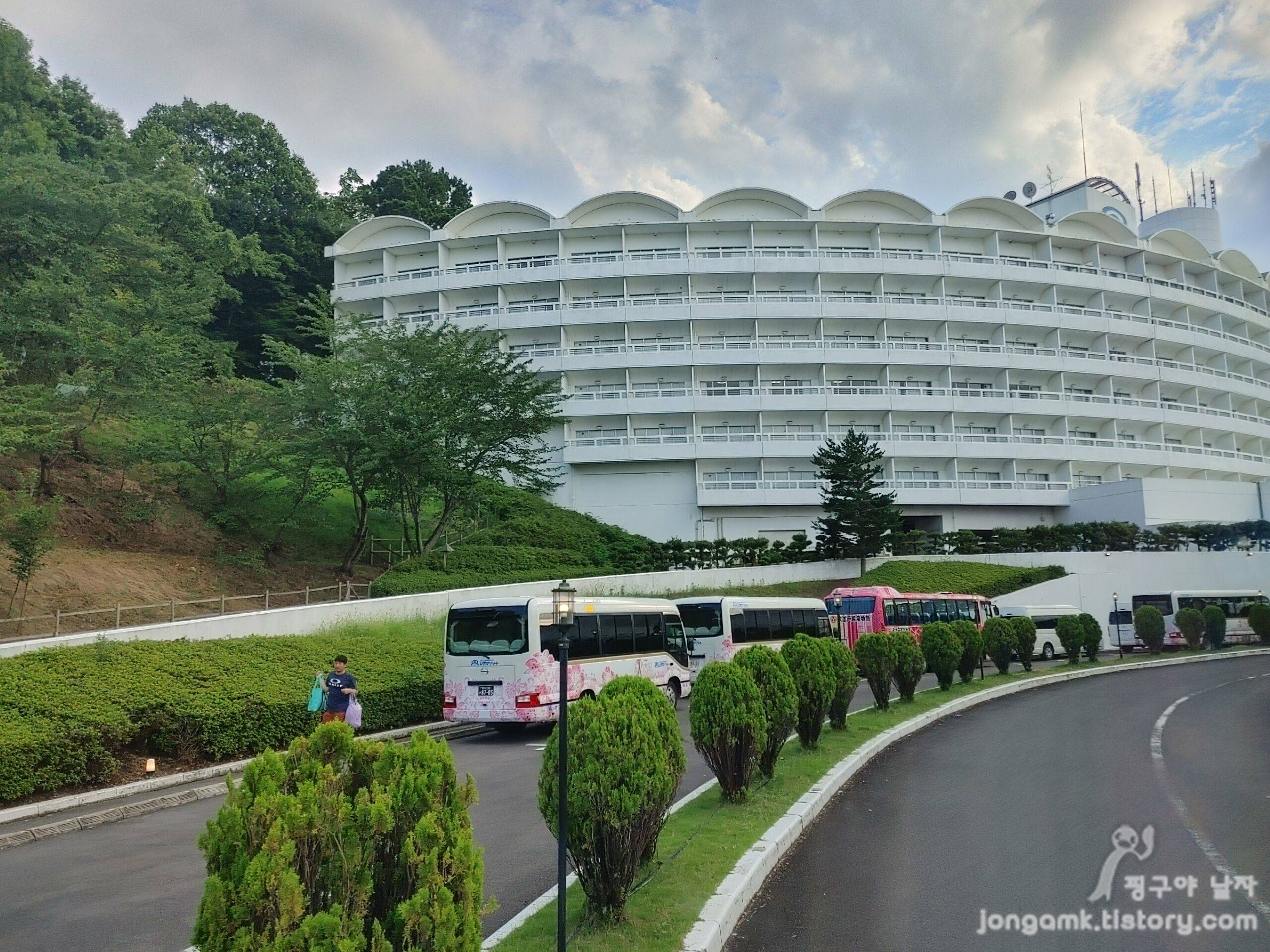 레오마노 모리 호텔의 초저녁 모습으로 그림 같은 뷰가 기억에 남네요. 첫날 관광은 일본에서 특별히 아름답다고 인정받고 있는 리츠린공원을 관광했습니다.