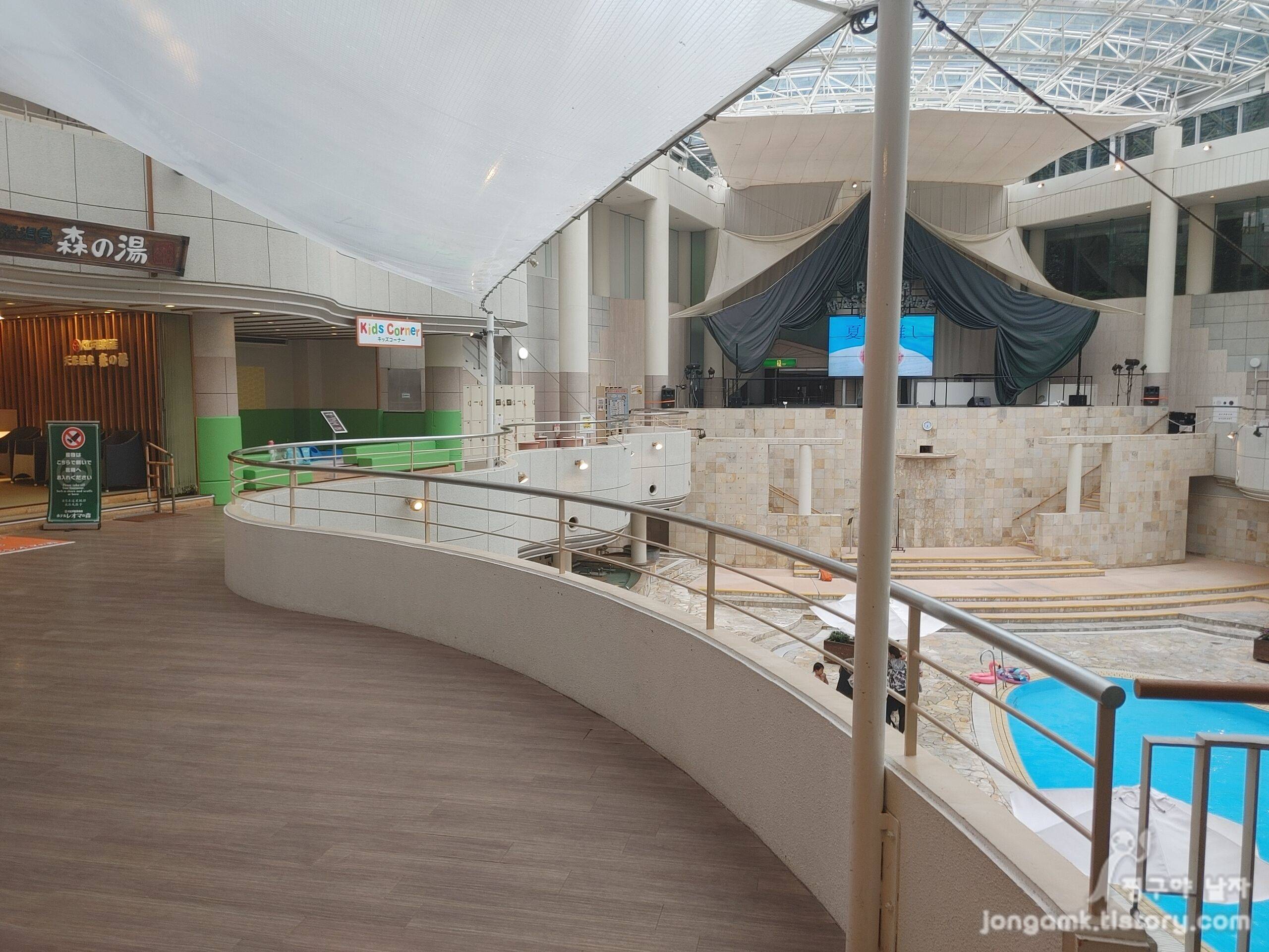 다카마쓰 레오마노 모리 호텔의 정문에서 직진을 하면 온천장과 키즈 풀장이 있습니다. 온천 이용시간은 11시30분 ~ 24시 로 오전에는 이용할 수 없어 아쉬웠습니다.