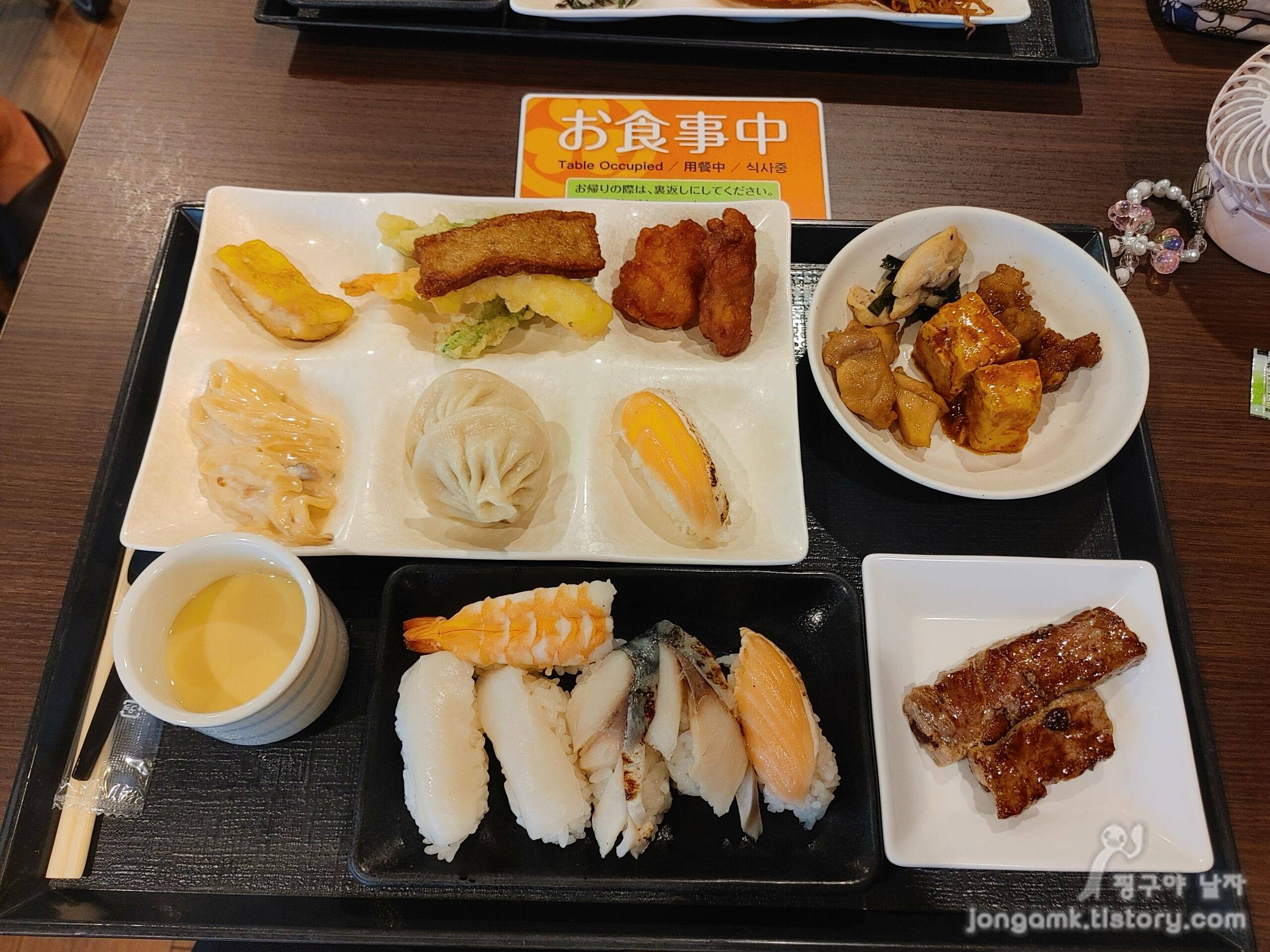 레오마노 모리 호텔의 식사는 후쿠오카의 힐튼 호텔과 비슷했습니다. 좀 더 낫기는 했지만 인스턴트 음식이 많은 편이라 일본 음식을 즐기고 싶은 분들에게는 약간 아쉬울 수도 있습니다. 마츠야마, 후쿠오카, 북해도 등 대체적으로 초밥에 밥이 많은 편입니다.