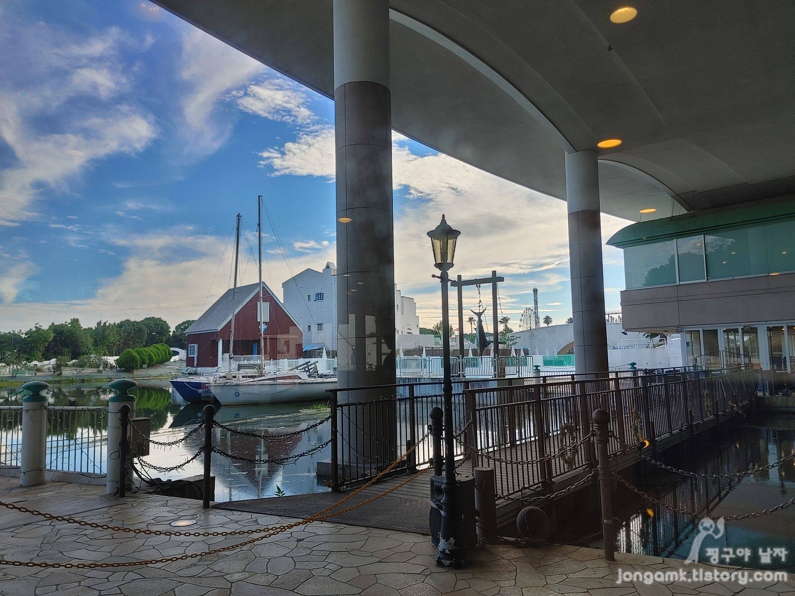 호텔 입구는 뷰가 좋았지만 바깥 쪽을 보기 위한 인도가 없어 아쉬웠습니다. 물론 일부 관광객은 차도에서 사진을 찍기도 했지만~ 국내 캐리비안베이와 비슷한 느낌을 갖게 하는 레오마노 모리 호텔입니다.