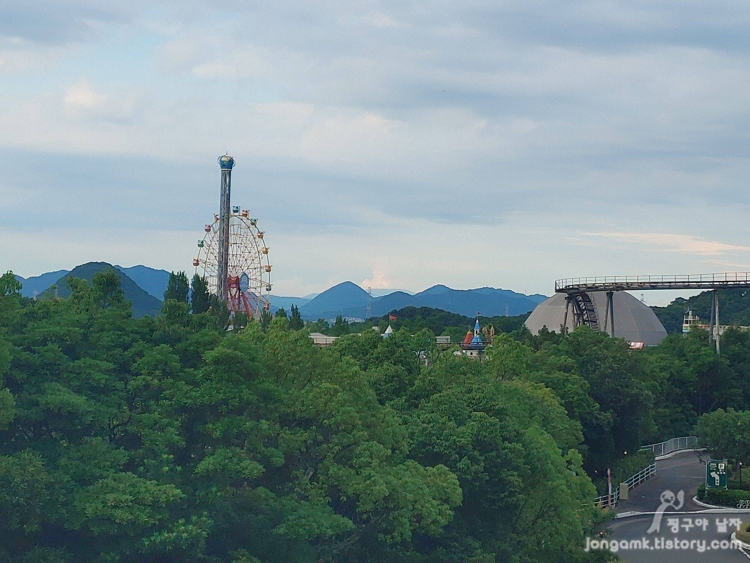 다카마쓰의 레오마노 모리 호텔 숙소 바깥의 모습입니다. 대관람차와 롤로코스터가 보였는데 이용하지 못해 아쉽지만 뷰로 만족했습니다. 여행 일정에 포함되면 어떨까 하는 생각도 해 봅니다.