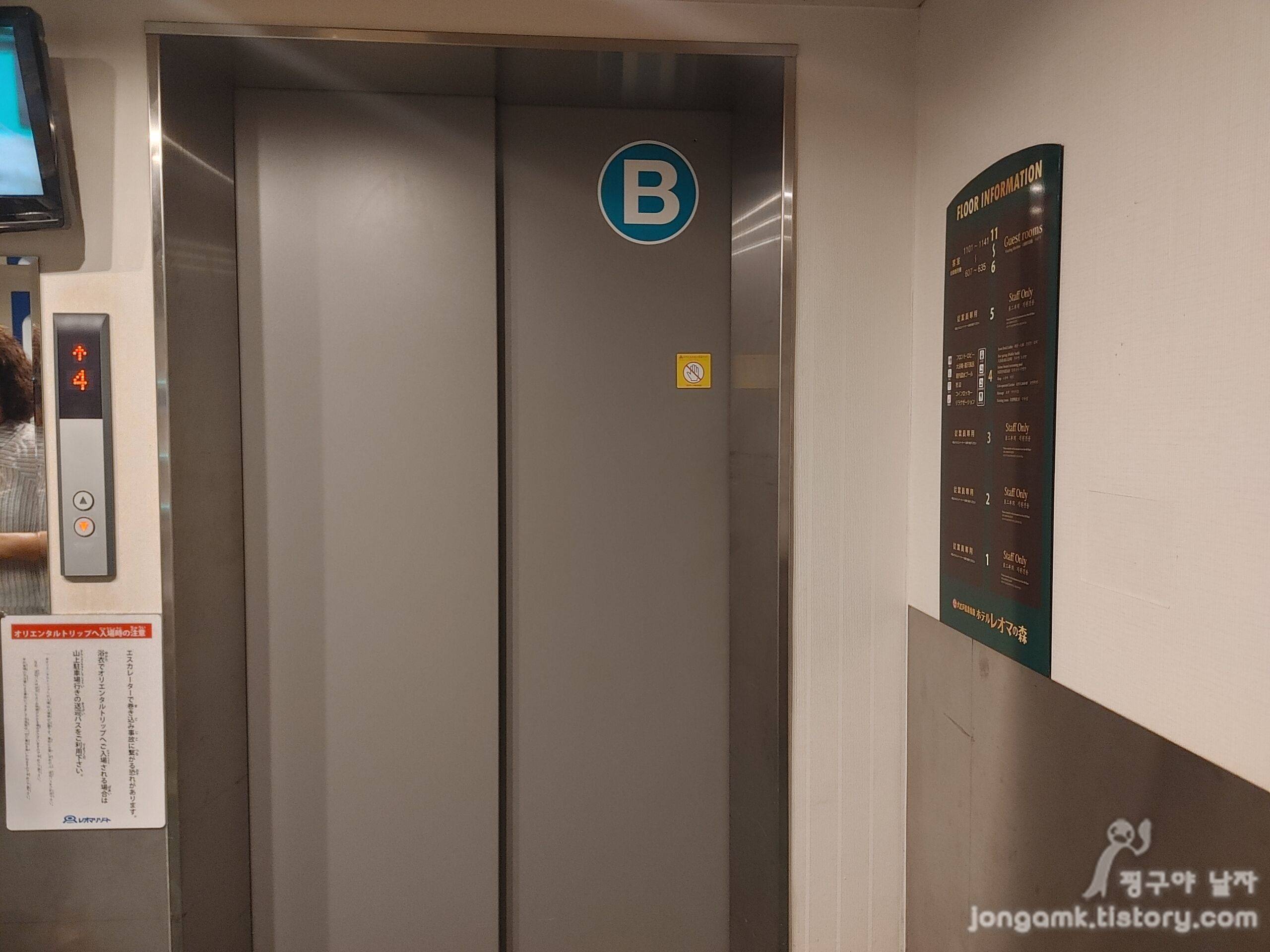 호텔 규모에 비해 엘리베이터 수는 적은 편이었습니다. 뭔가 특색이 있는 부분은 없었으며 식당과 연결된 엘리베이터와 숙소만 연결된 엘리베이터로 편하게 이용하면 됩니다.