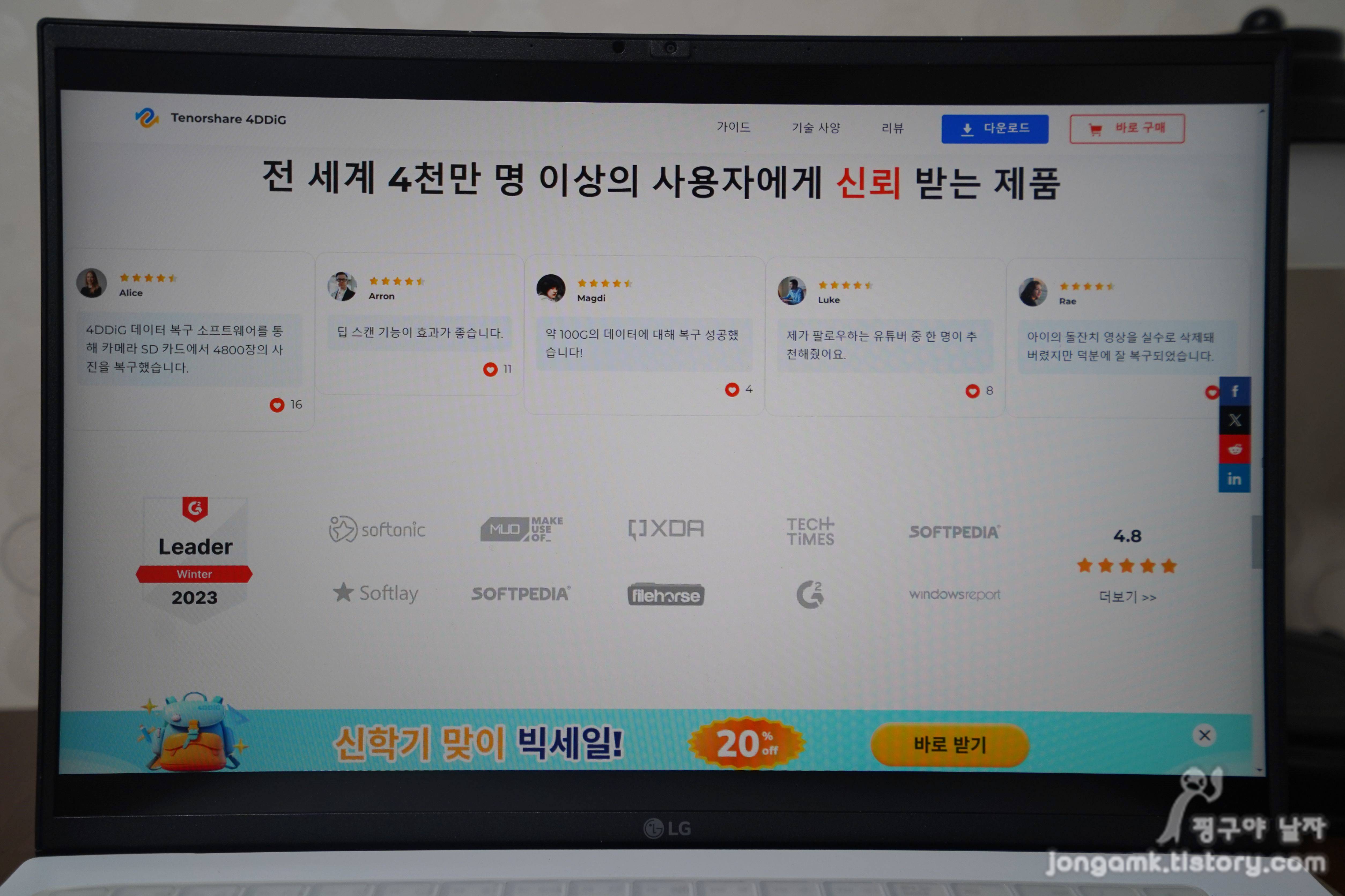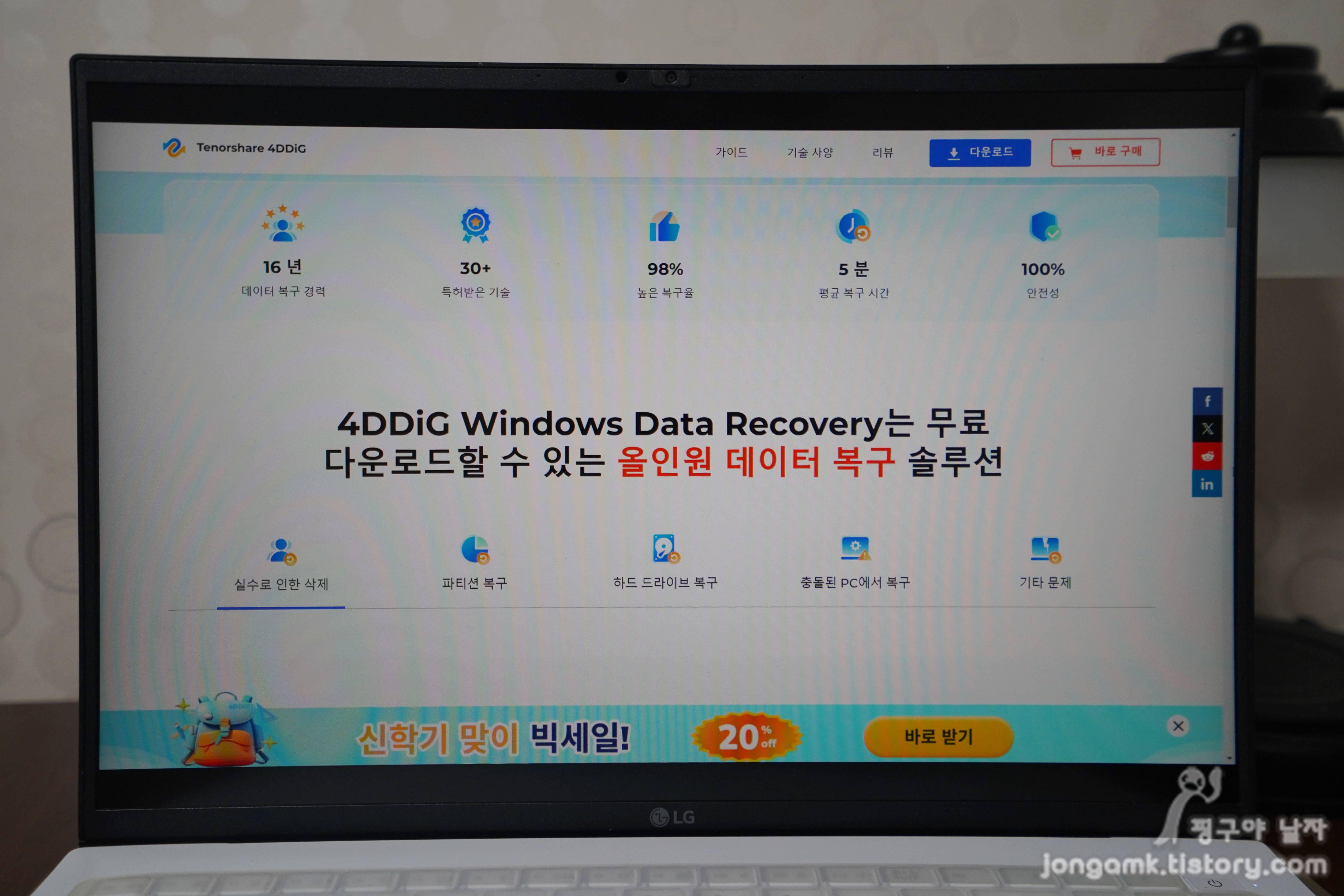 4DDiG Data Recovery(포디딕 데이터 복구)프로그램은 테너쉐어 제품으로 다른 제품을 사용해 봐서 개인적으로 신뢰하고 있는 프로그램입니다.