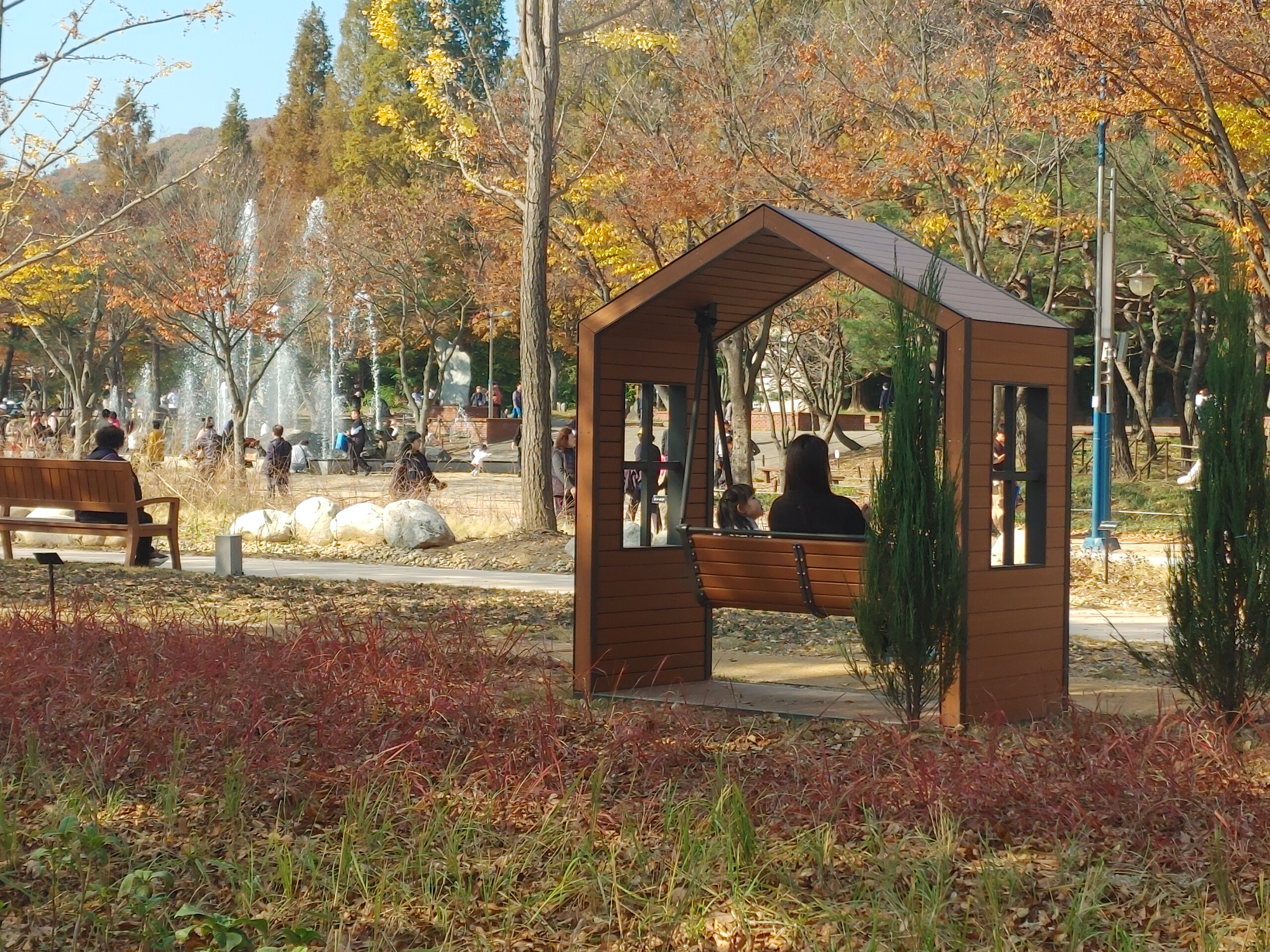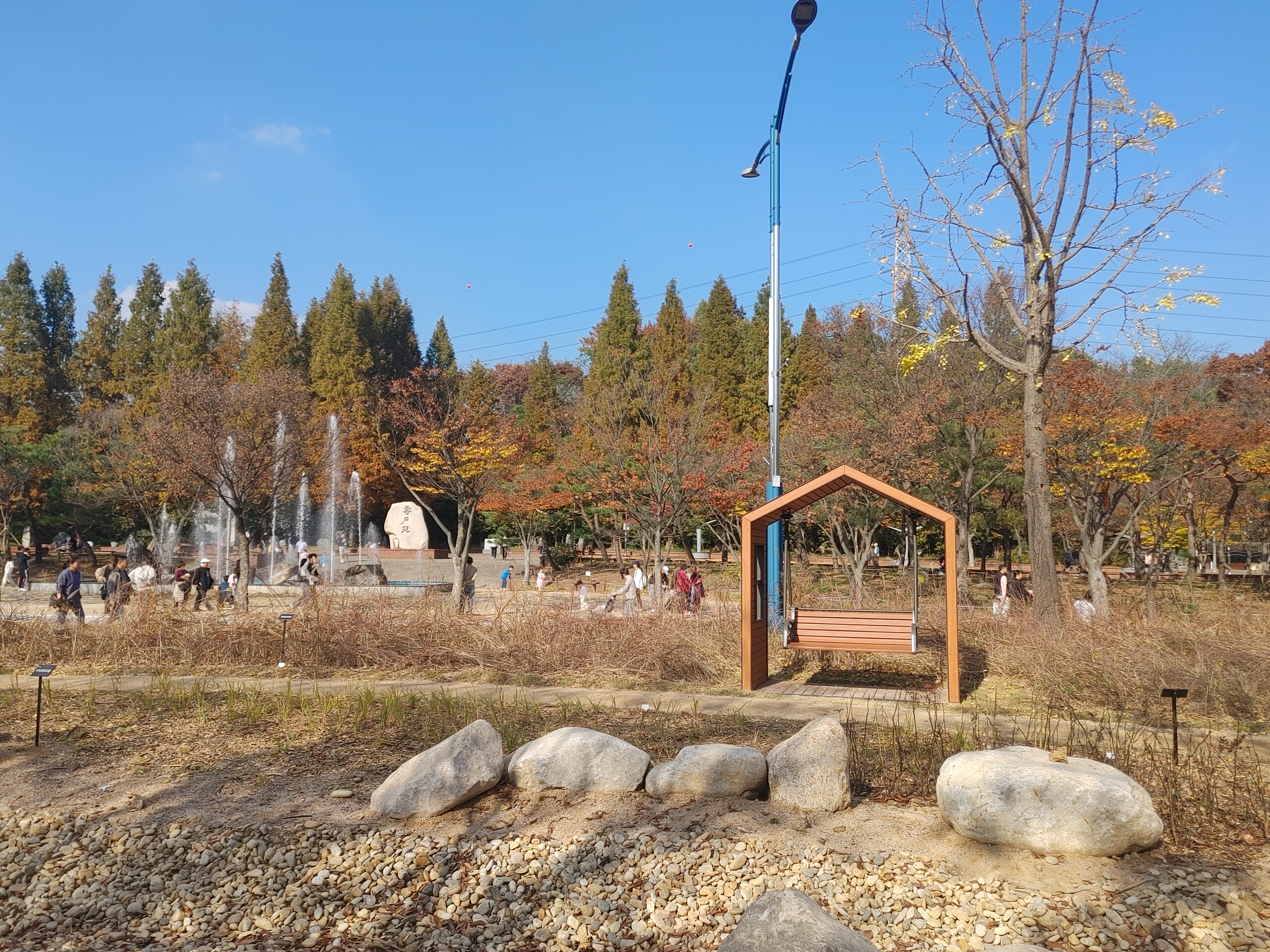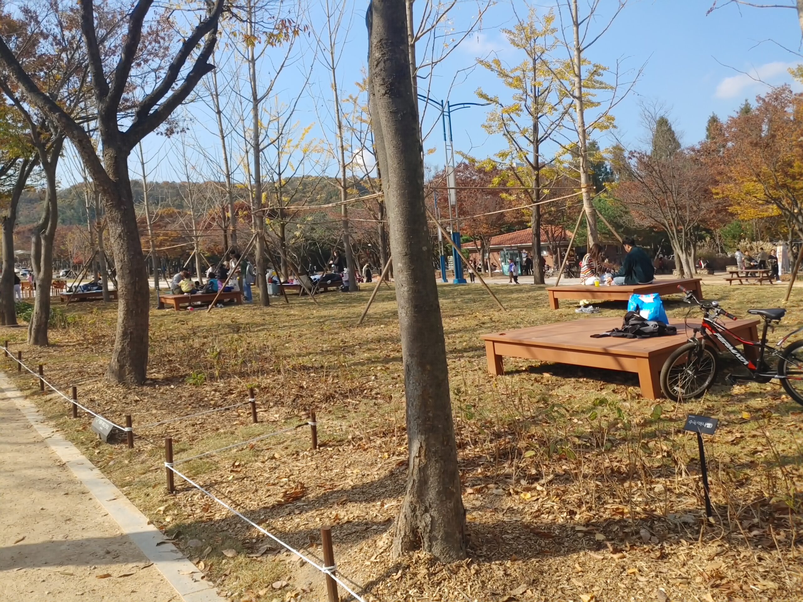 그리고 그네가 설치되어 있었는데 예전에는 없었거든요 부부끼리 친구끼리 연인끼리 그네를 타면서 여유 있는 주말을 보내는 모습이 보기 좋았습니다