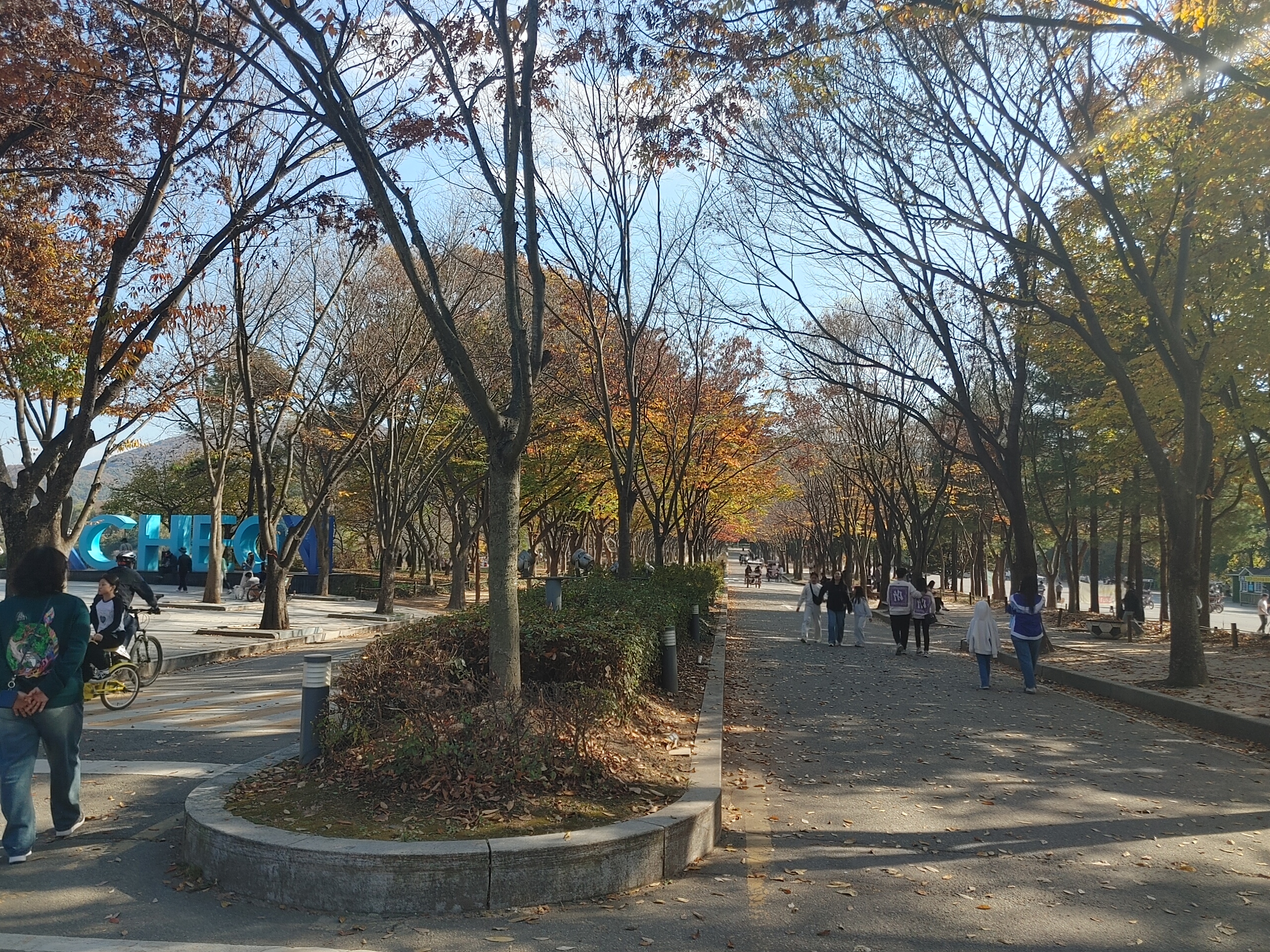단풍길 사이로 인천대공원을 찾은 방문객들의 여유 있는 산책은 이런게 행복이 아닌가 싶은 생각이 그런 듯 들기도 했습니다 길이 실제로 보면 너무 예뻐요