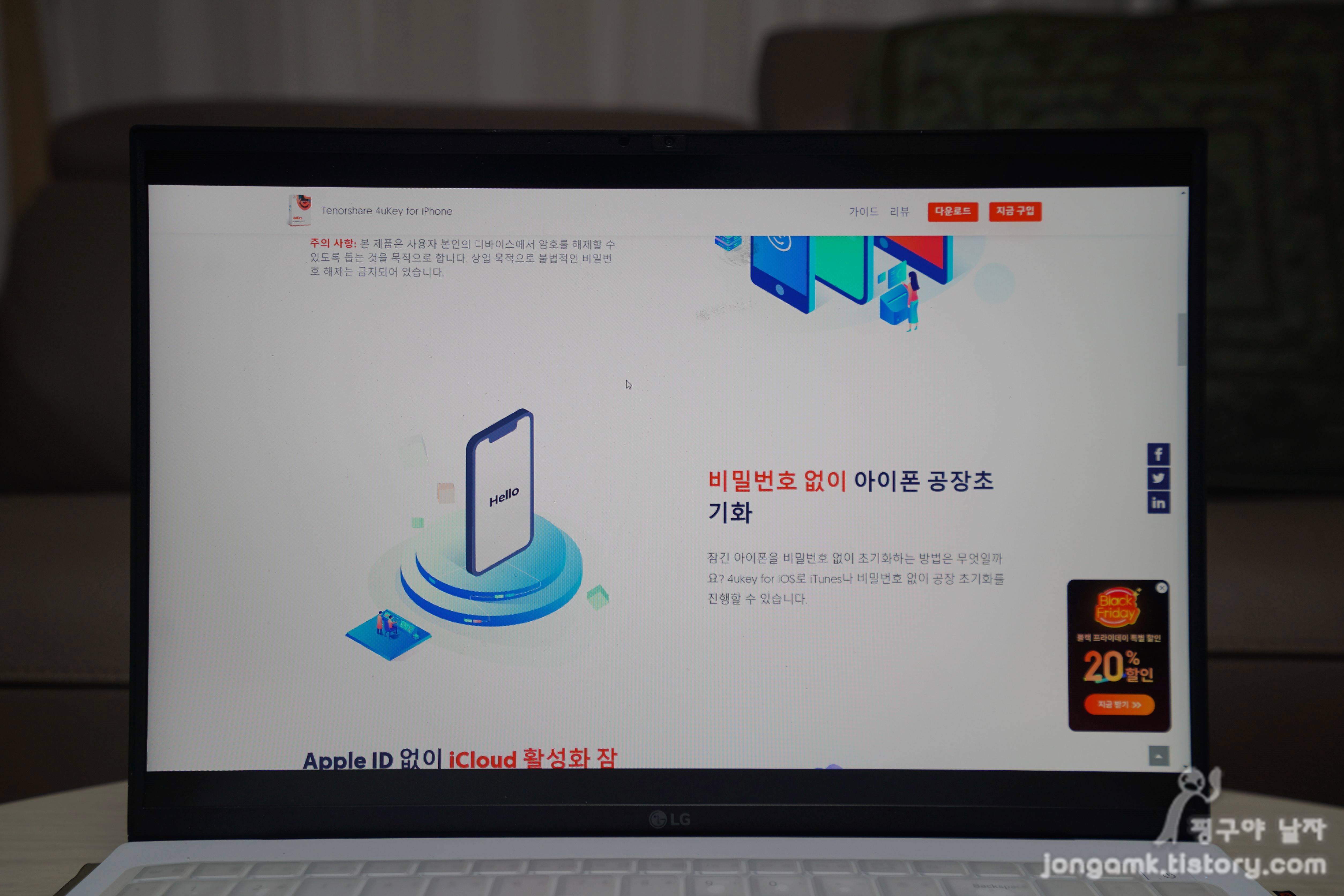 혹시 아이폰 중고판매 등으로 사용하게 될 경우는 반드시 아이클라우드락 여부를 확인해야 번거로움이 없습니다. 그러나 아이폰 중고가격이 저렴해 꼭 구매해야 한다면 테너쉐어의 포유키(Tenorshare 4uKey for iOS)를 고민해 보세요. 요즘 라이선스를 할인받을 수 있는 프로모션을 진행하고 있으니 참고하시구요.