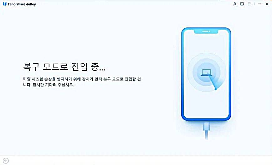3단계는 복구진입 단계로 파일 시스템 손상을 방지하기 위해 아이폰이 먼저 복구 모드로 진입해 실행합니다. 3단계까지 진행했으면 거의 다 끝났어요.