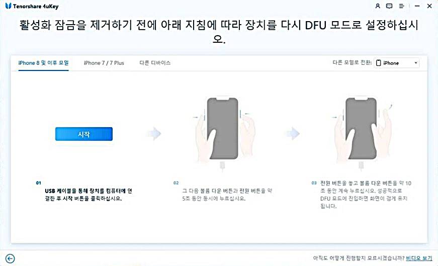 위의 방법을 활성화 잠금을 제거하기 전에 아이폰을 다시 DPU모드로 설정하는 과정입니다. 예전에 아이폰ID 없이 잠금해제할 때 설명드렸던 방법입니다.