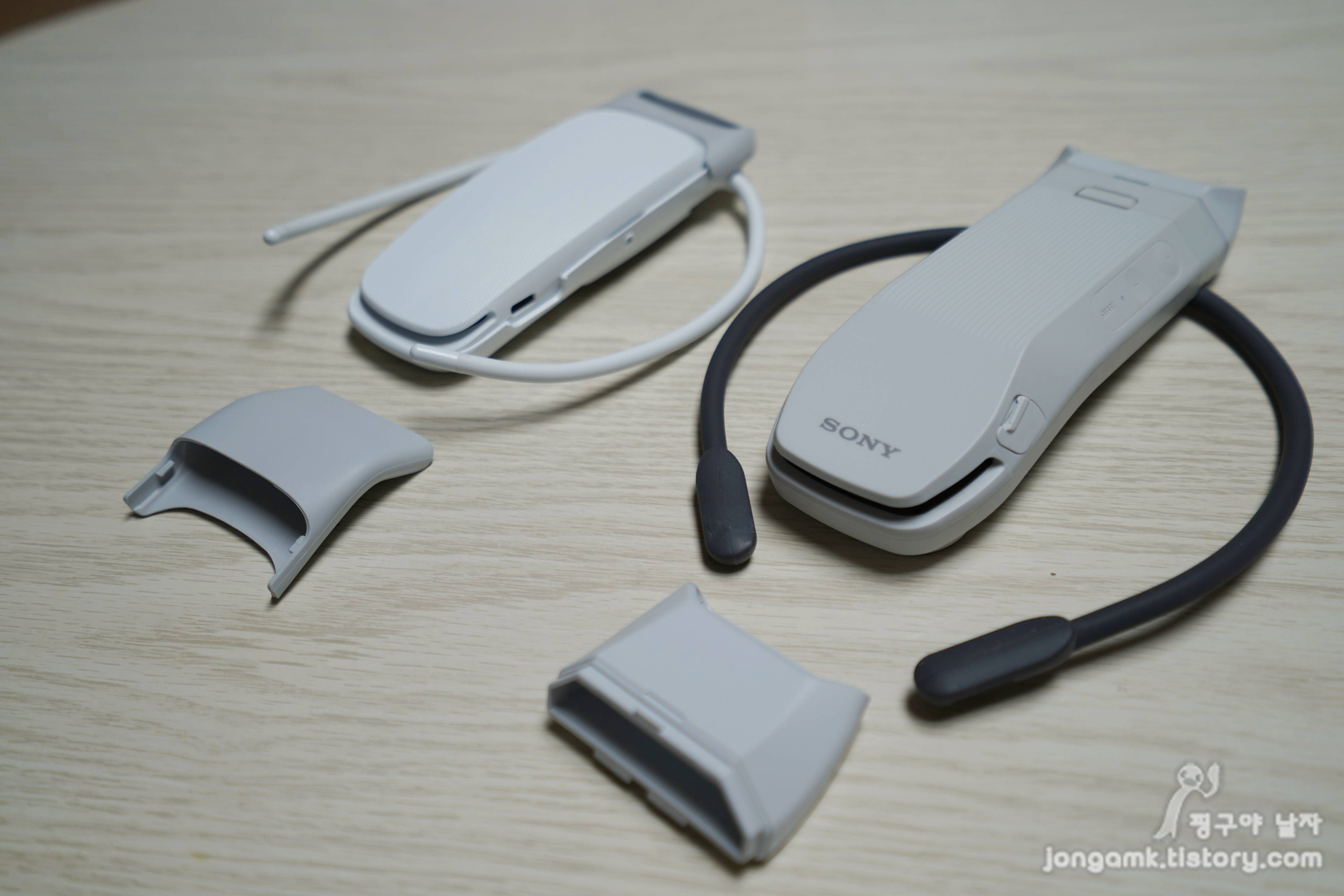 먼저 소니 휴대용 에어컨으로 부르고 싶은 웨어러블 온도조절기 레오 포켓 프로의 구성품은 본체와 충전케이블 그리고 리모컨과 통기구 2개 그리고 사용설명서 등이 있습니다. 넥밴드는 부드러운 실리콘 고무로 마감해 유연한 착용이 가능하고 2개의 써모모듈을 탑재해 레오 포켓5보다 2배 더 넓은 냉방면적을 갖고 있습니다.