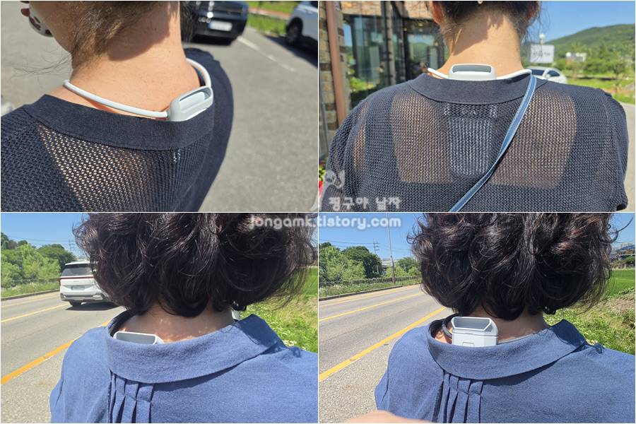 레온 포켓5와 레온 포켓 프로를 착용하면 밖에서는 송풍구만 보이기 때문에 그렇게 신경 쓰이지 않습니다. 36도가 남나드는 무더위를 완벽하게 막아주지는 못하지만 확실히 시원하니 훨씬 낫더라구요. 물론 옷에 따라서는 신경이 쓰이는 분도 있겠지만 처음에만 그렇지 나중에는 옷과 동일하게 생각되더라구요.