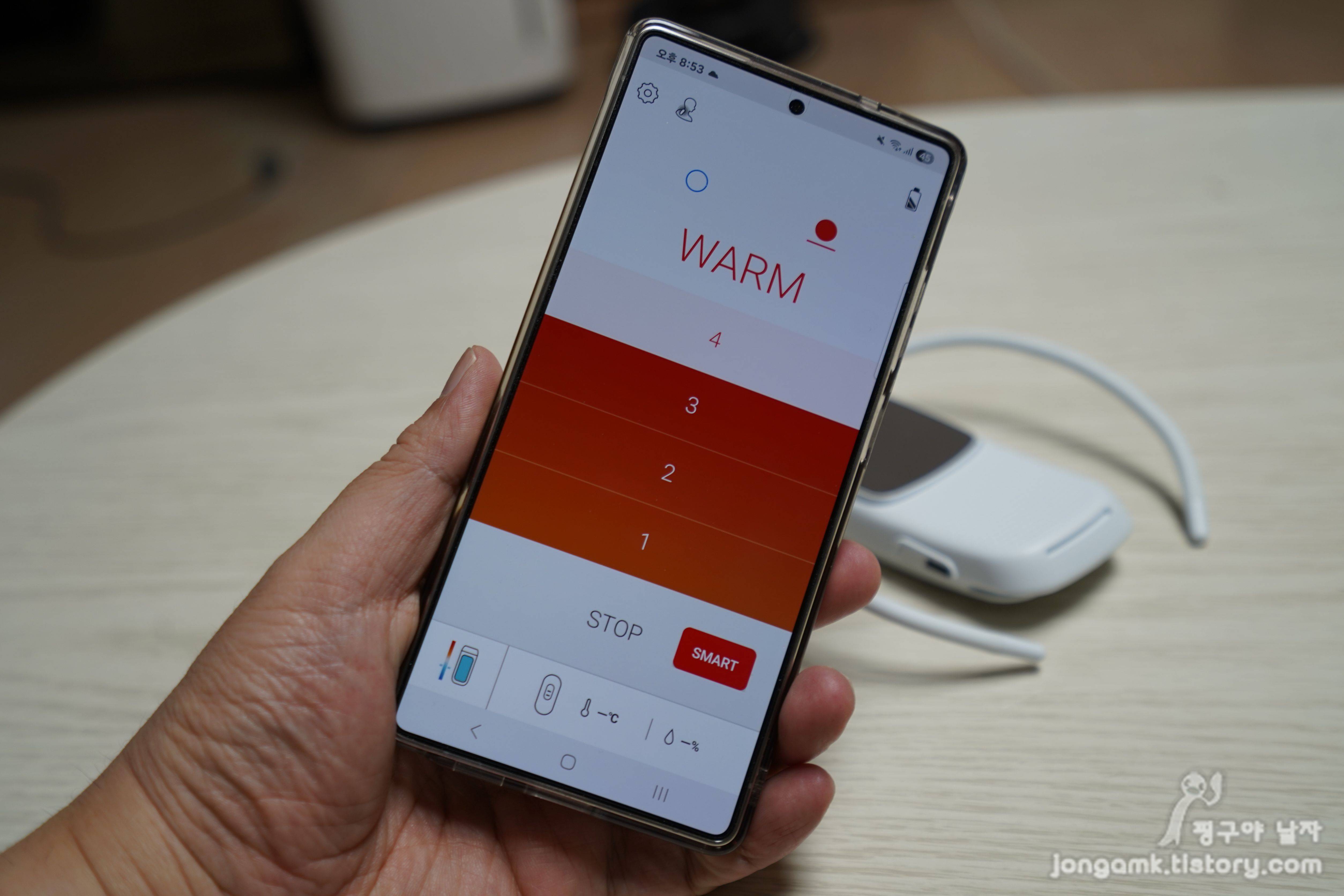 겨울철에는 어떤지 WARM 모드를 사용해 보면 어떤지 확인해 보니 뜨뜻하더라구요. COOOL과 달리 레벨4까지 있는데요. 여름에는 휴대용 에어컨으로 겨울에는 온풍기로 사용할 수 있는 레온 포켓5와 레온 포켓 프로는 신기한 디바이스임에는 틀림이 없었습니다. 아마도 반응에 따라서 국내 업체들도 출시하게 되지 않을까 싶기도 하네요.