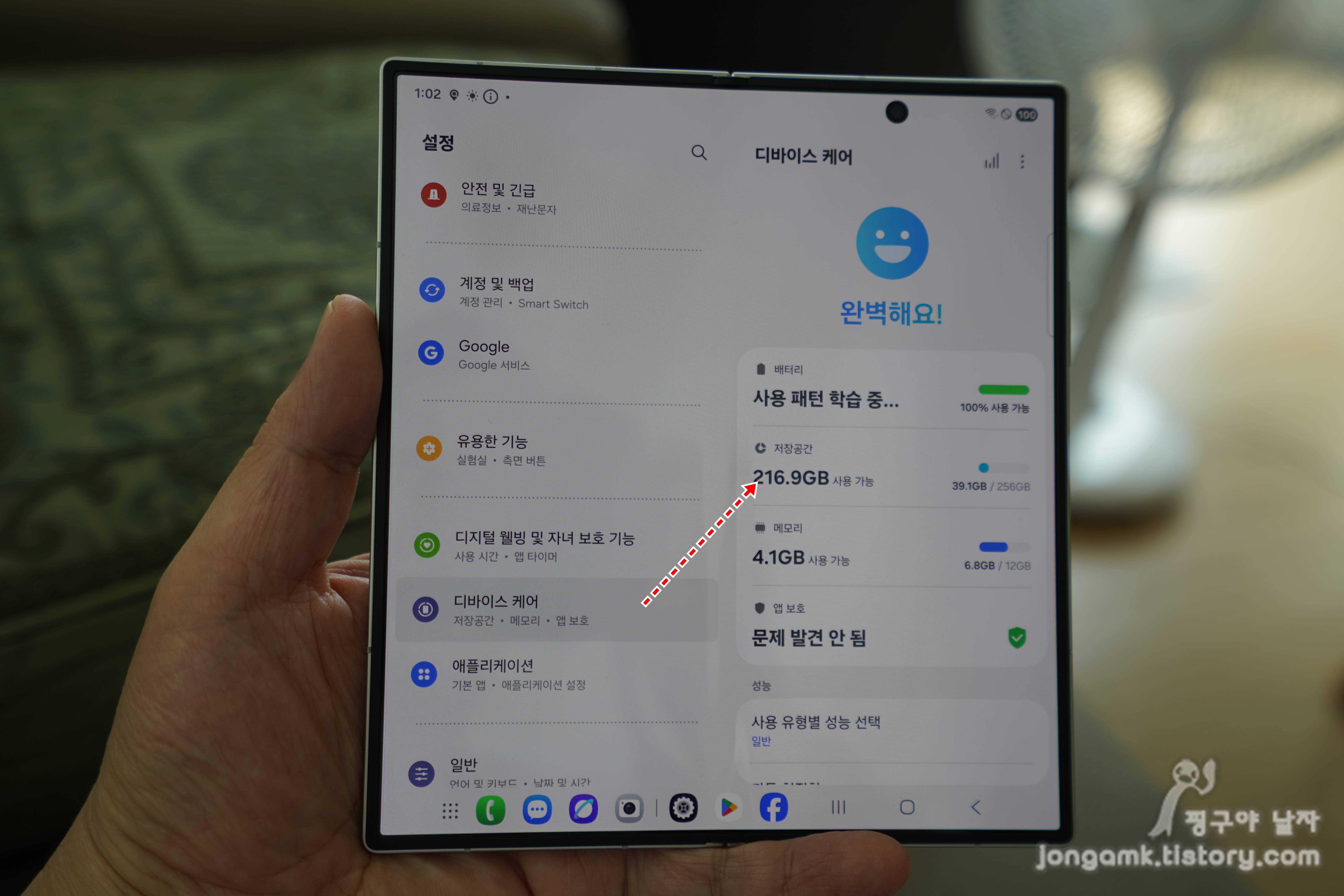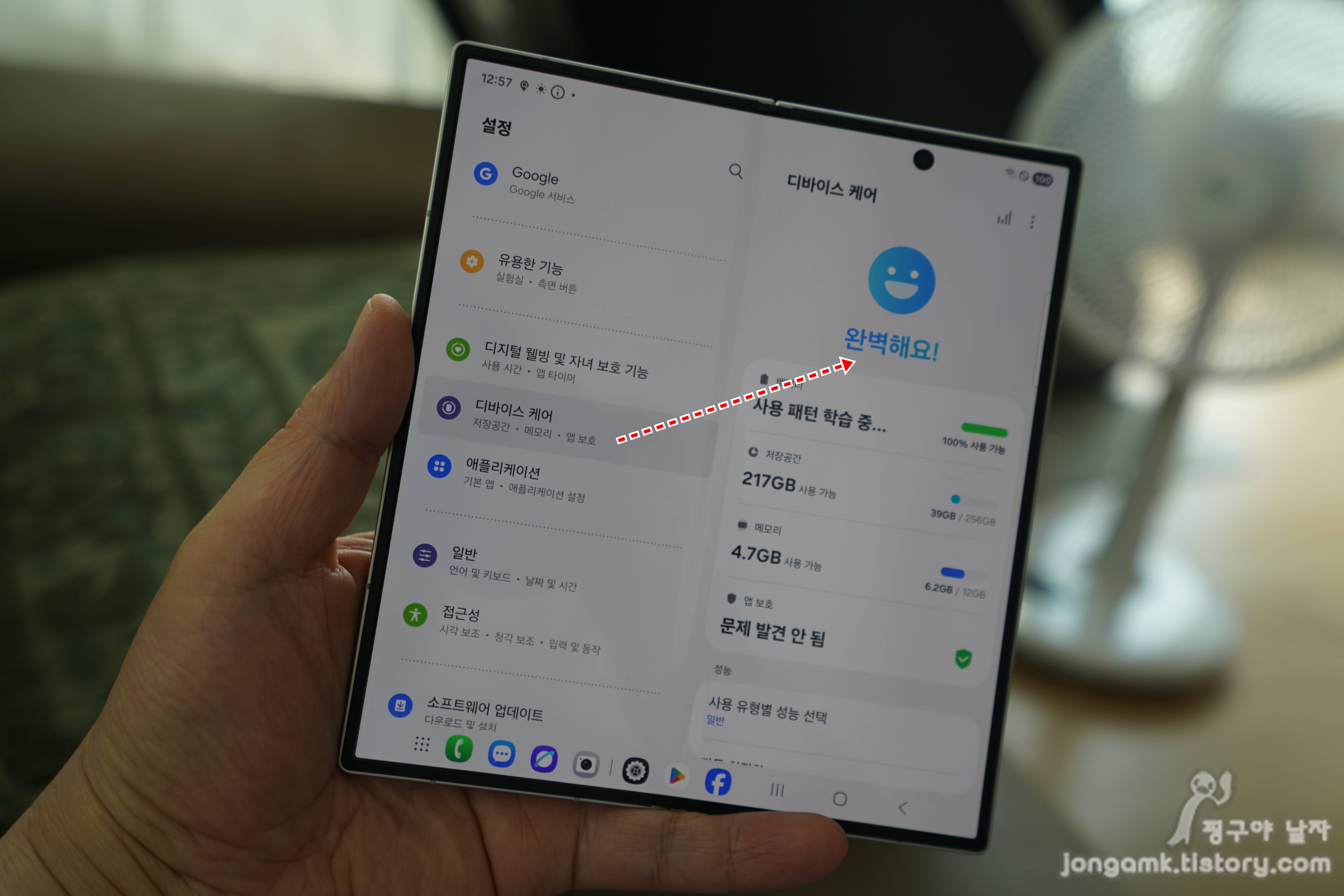 갤럭시Z 폴드7 디바이스케어와 화면속도