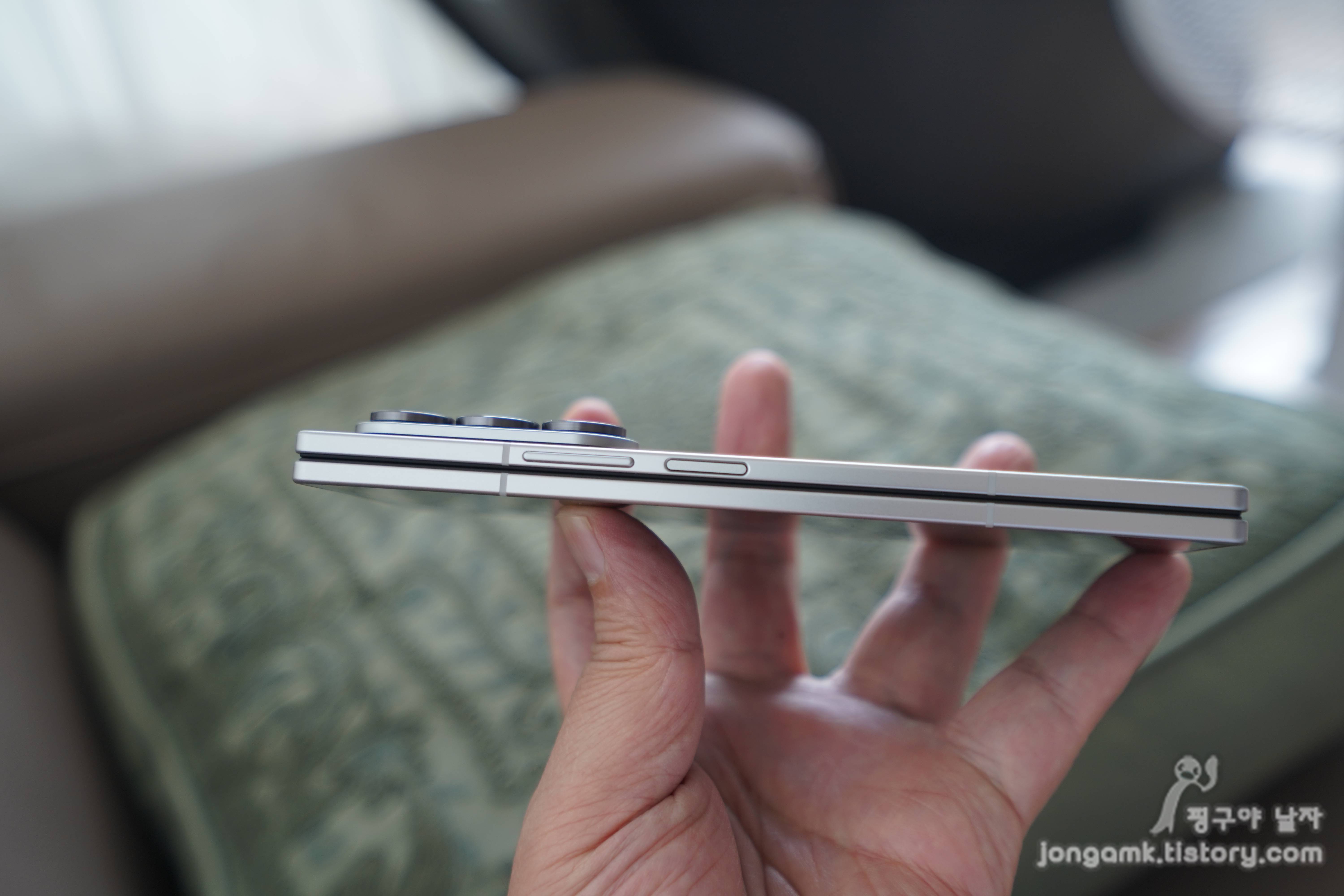 갤럭시Z 폴드7을 접은 상태의 두께를 갤럭시S25 울트라와 비교해도 거의 차이를 느끼지 못할 정도라 놀랐습니다. 삼성이 이번에 작정을 했구나 하는 생각이 들 수 밖에 없었습니다. 다만 카메라 섬이 너무 두꺼워 뺐다면 더 좋았을 텐데 하는 아쉬움은 있습니다.