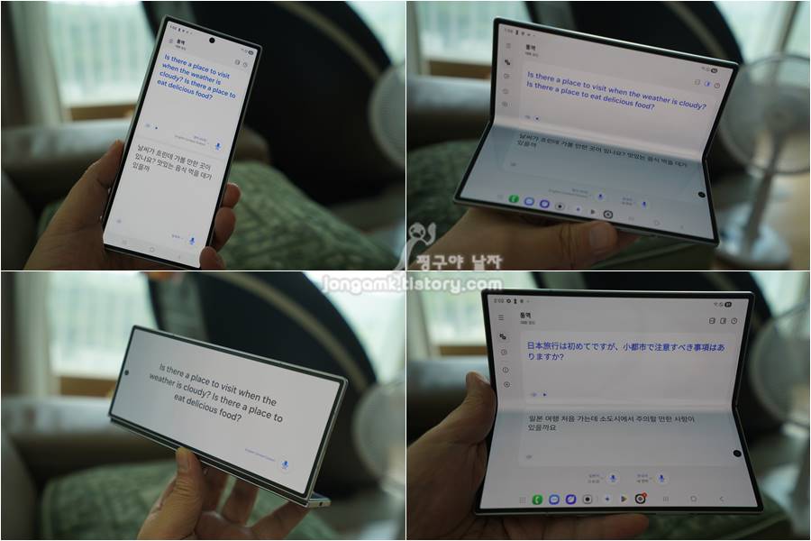 개인적으로는 영어와 일본어를 주로 많이 사용하는 편이라 언어팩에서 미리 받았구요. 번역앱의 우측상단의 표시 방법 아이콘을 선택하면 커버 디스플레이에 외국인이 보기 편하게 번역이 되고 마이크를 켜면 음성도 지원됩니다. 갤럭시Z 폴드7 사전예약으로 구매한 분이나 추후 직접 구매한 분들은 고가의 스마트폰이라 능력자가 아닐까 싶기도 합니다.