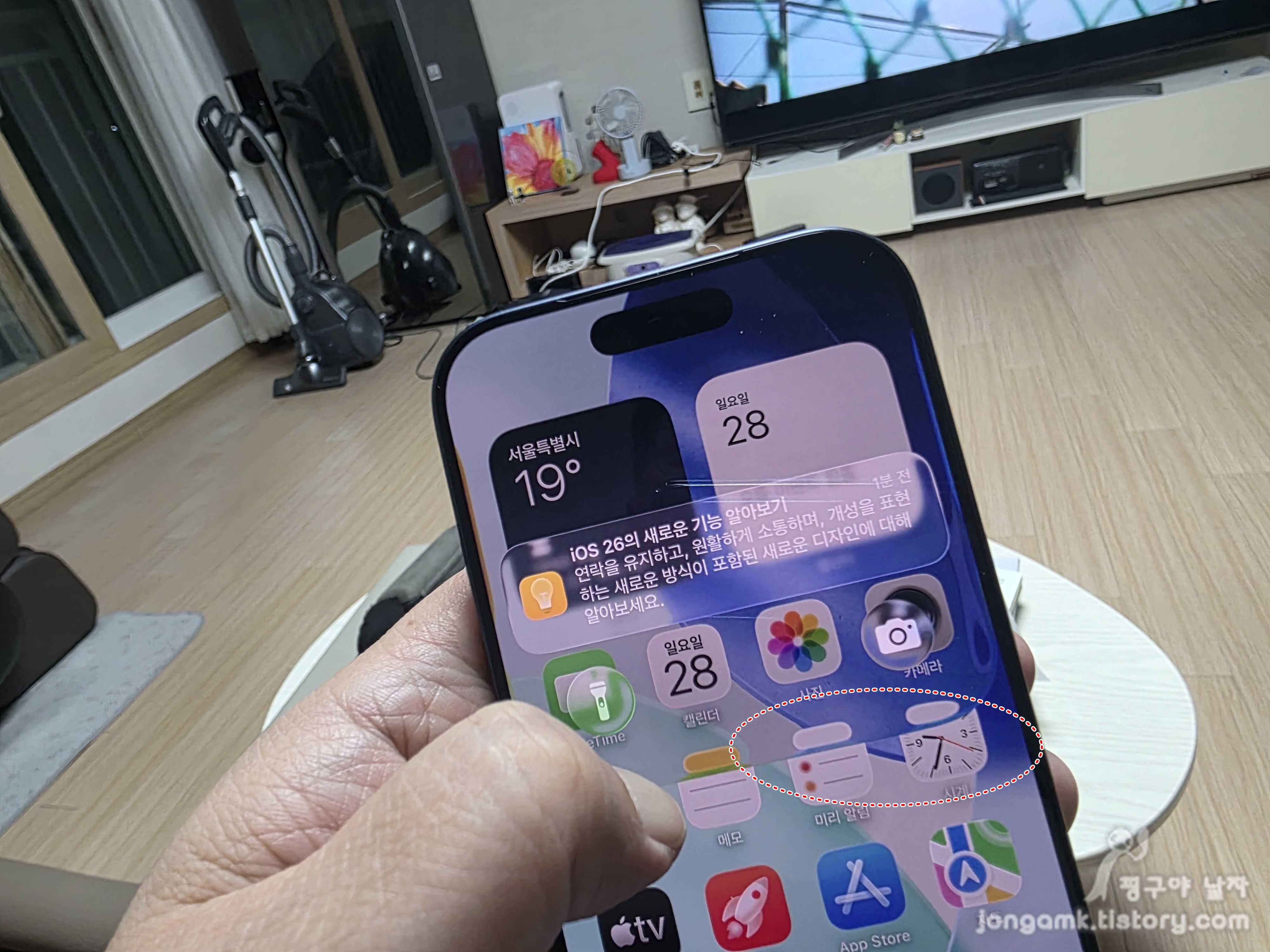 애플은 아이폰을 갖고 싶게 만드는 디자인에 대한 기대를 저버리지 않았는데요. 화면 상단에서 아래도 내리면 마치 유리로 된 디스플레이가 별도로 있는 것처럼 입체적으로 설정 화면이 내려옵니다. 갤럭시S25 울트라의 경우는 페이드 인아웃 같은 방식으로 화면을 전환하는 것과 차이가 있습니다.