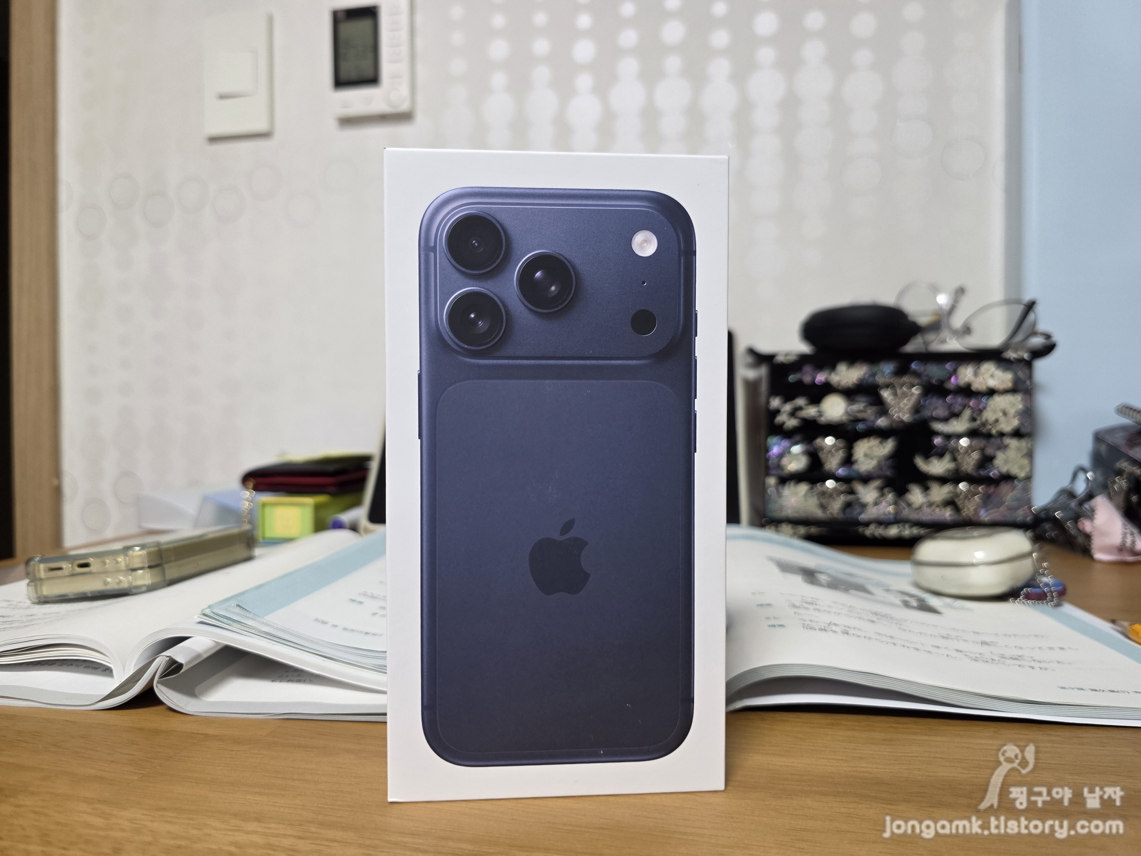 아이폰17 프로 딥 블루 512GB 개봉기 및 간단하게 사용기를 정리해 보겠습니다. 아이폰17 프로를 손에 쥐어 보니까 아이폰17 프로 맥스보다는 그립감과 휴대성이 더 좋아 만족스러웠습니다. 아이폰17 프로의 컬러 중 코믹스 오렌지 컬러가 메인으로 많이 보여 고민이 되는 분들도 있을 텐데요. 막상 아이폰17 프로 딥 블루는 매력적이면서 주변을 의식하지 않아도 될 정도의 무난함도 있어 개인적으로는 괜찮은 것 같아요. 아이폰17 프로 딥 블루 512GB의 가격은 2,090,000원이고 256GB는 1,790,000원입니다. 30만원 차이의 가격이 고민되는 분도 있을 텐데 메모리 선택에 따라 데이터 무제한을 사용할 수 있는 통신요금을 고려하면 어떨까 싶네요.