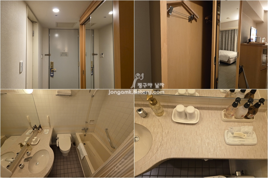간사이 벨뷰 가든 호텔은 도심의 호텔보다는 크지만 그래도 일본 소도시에 있던 온천이 있는 호텔과는 비교가 되었습니다. 깔끔한 실내가 일본의 느낌을 갖게 하고 면도기나 빗, 칫솔 등 추가로 필요한 물품은 데스크에서 챙겨가면 됩니다.