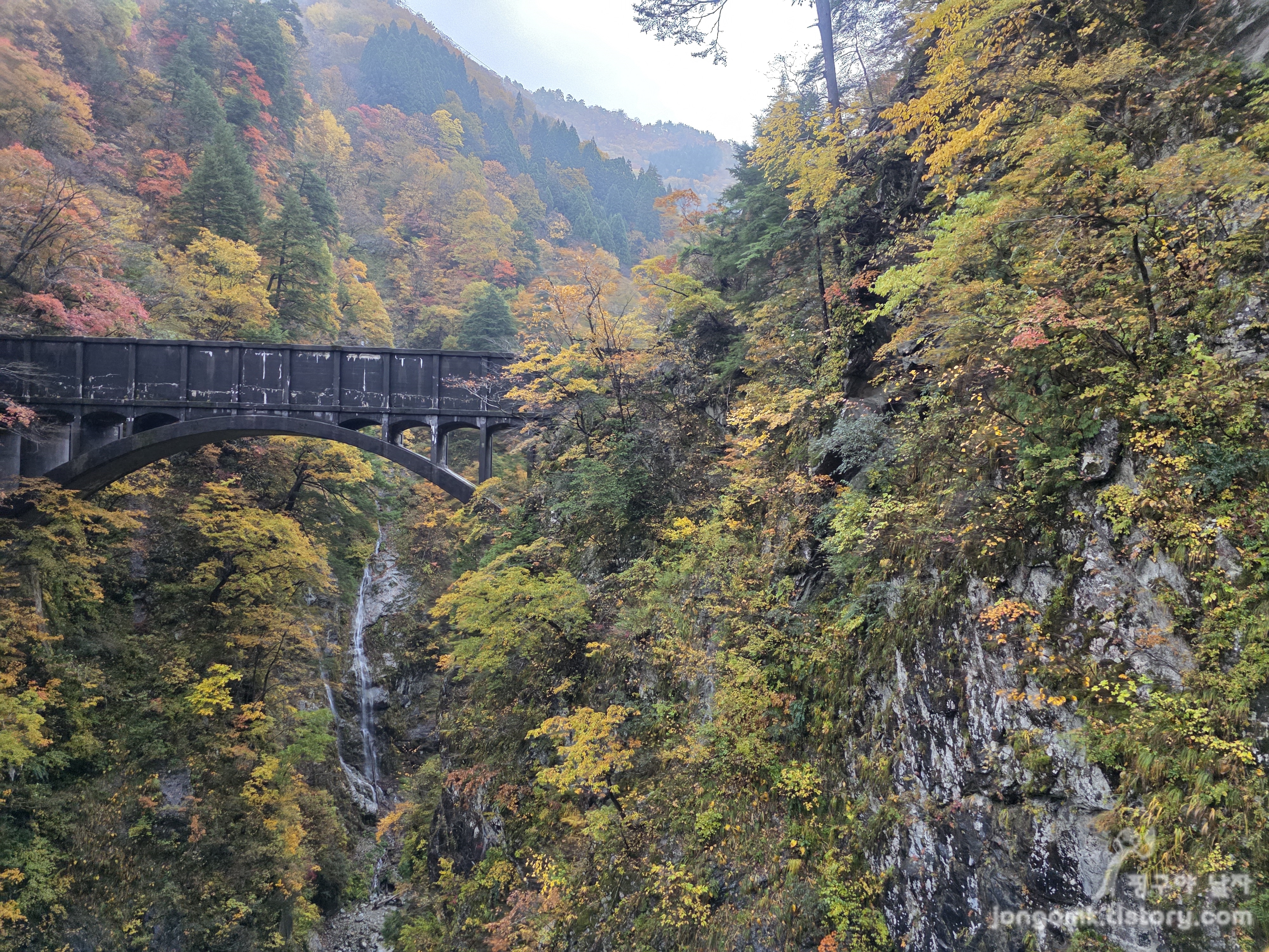 약 41여개의 터널과 22개의 다리를 지나며 쿠로베 알펜루트의 폭포와 각도가 높은 산마다 제대로 물든 단풍을 구경할 수 있어 가을 여행을 제대로 하게 되었습니다. 봄이나 겨울에 오면 또 다른 느낌의 여행이 될 것 같아요. 지금도 일부 구간에서 공사를 함께 진행하고 있지만 운행에는 큰 문제가 없었습니다.