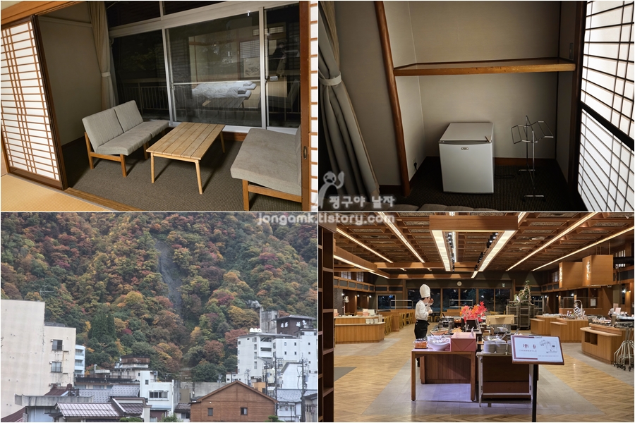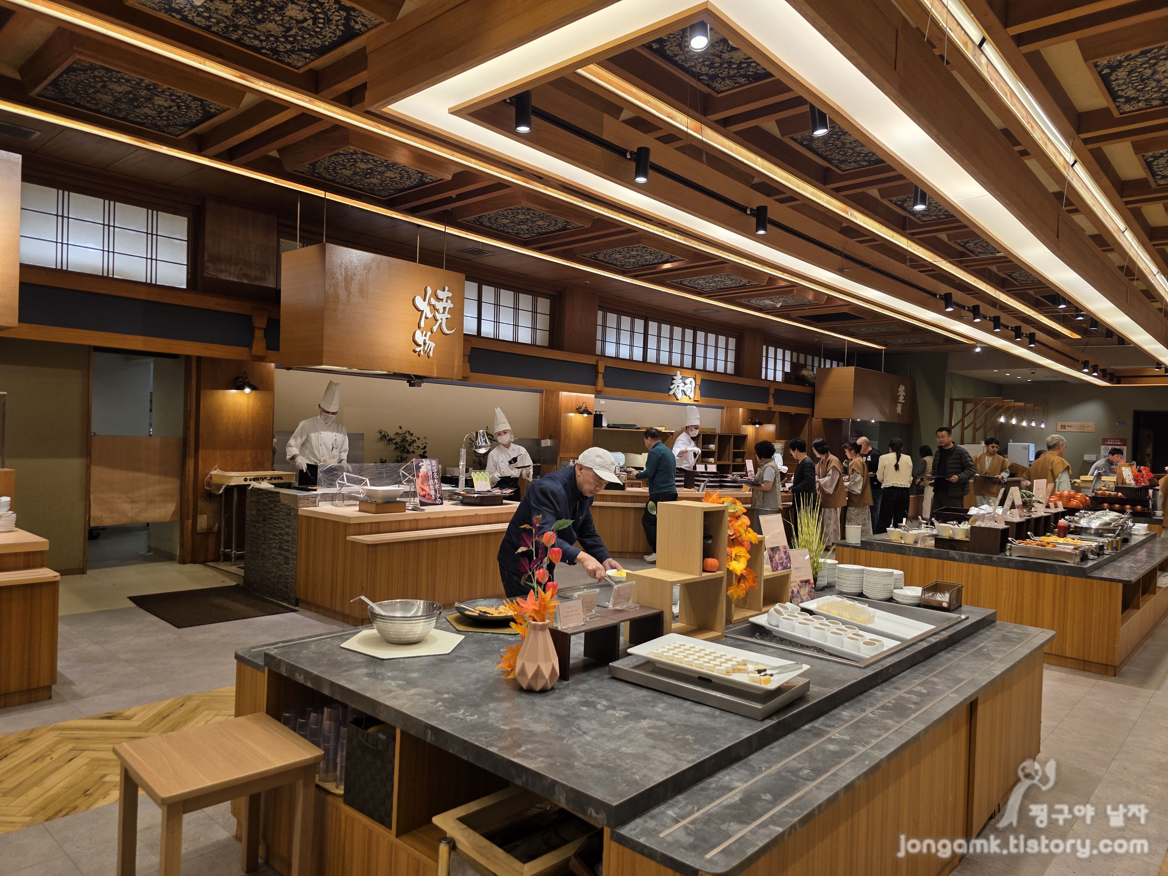 뷔페식으로 석식과 조식을 즐겼는데 다양한 음식으로 즐거운 시간을 보낼 수 있었습니다. 이번에도 어김없이 낫또를 먹어야 하는 상황이었지만~ ㅋㅋ 북적이지 않고 넉넉한 여유로 하루의 시작과 마무리를 할 수 있었습니다. 온천의 크기는 크지 않았지만 이용객이 몰리지 않아 여유가 있었습니다.