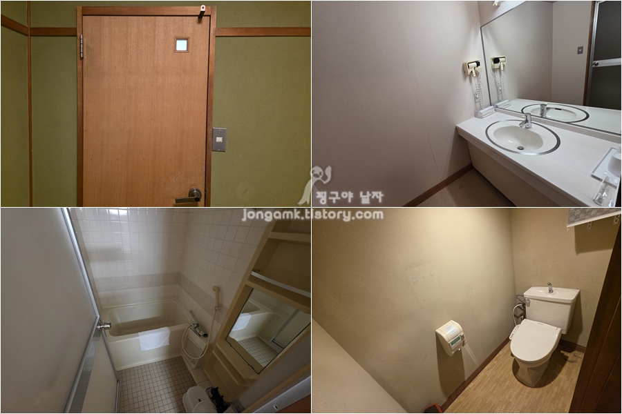 침대방도 있었지만 다다미 방도 푹신한 요와 포근한 이불로 숙면을 취하는 데 부족함이 없었습니다. 창호지로 마감한 듯한 문도 정감 있고 의자가 없는 탁자도 예전에 살던 우리네 분위기가 느껴지는 거 있죠.