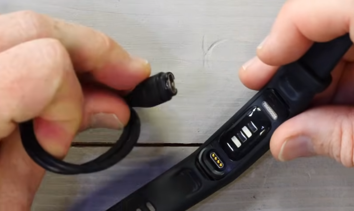 가민 비보스마트6는 무선 충전은 제공되지 않습니다. 많은 가민 피트니스 밴드와 스마트워치의 불편한 점 중 하나로 지적하고 있는 것이 바로 충전 방식입니다. 특히 저렴한 모델들은 대부분 전용 충전 케이블을 사용하기 때문에 다소 불편할 수 있습니다. 표준 USB 커넥터가 아니라 분실하면 새로 구매해야 합니다. 참고로 완충까지 약 2시간이 걸립니다.