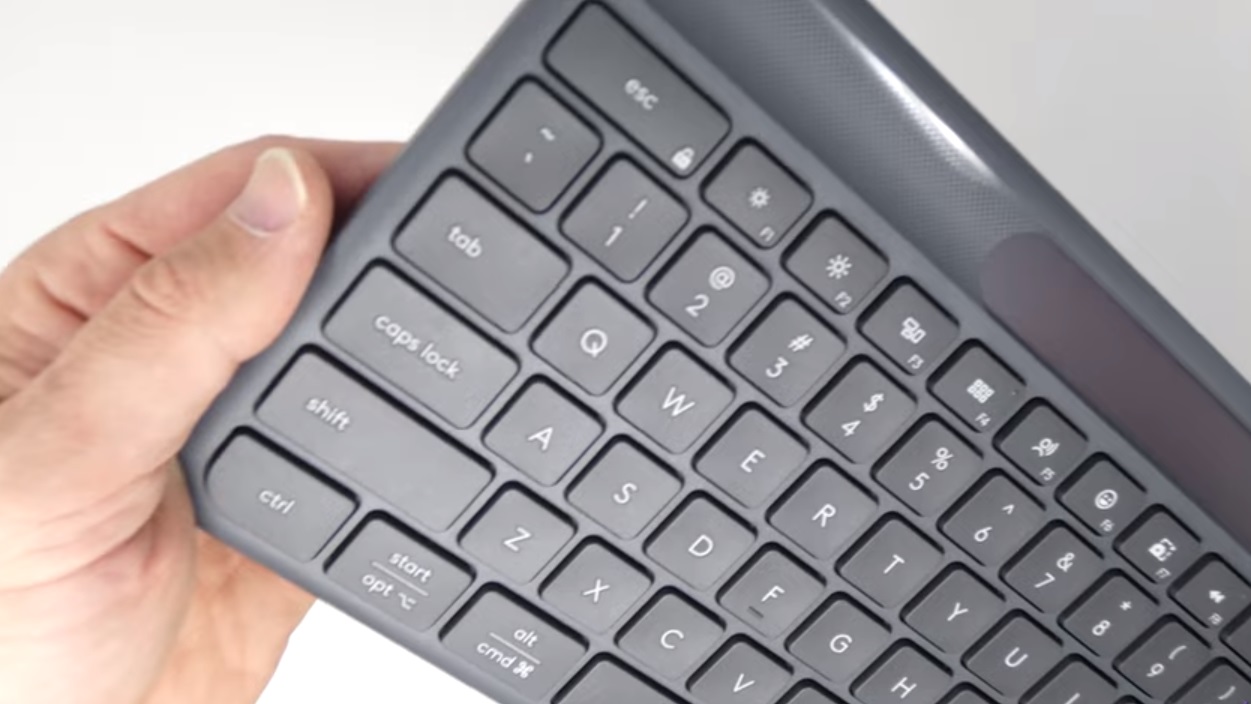 태양광 충전 스트립은 기능 키 위쪽 상단 가장자리를 따라 이어져 있습니다. 디자인과 잘 어우러지지만 움푹 들어간 부분에 먼지 등이 쌓일 수 있기 때문에 최적의 충전 효율을 위해 정기적으로 청소하는 것이 좋습니다. 또한 태양광 충전 스트립 위에 물건을 올려놓으면 안 되겠죠. 펜이나 애플 펜슬을 올려놓기 좋지만 충전에 방해가 될 수 있습니다.