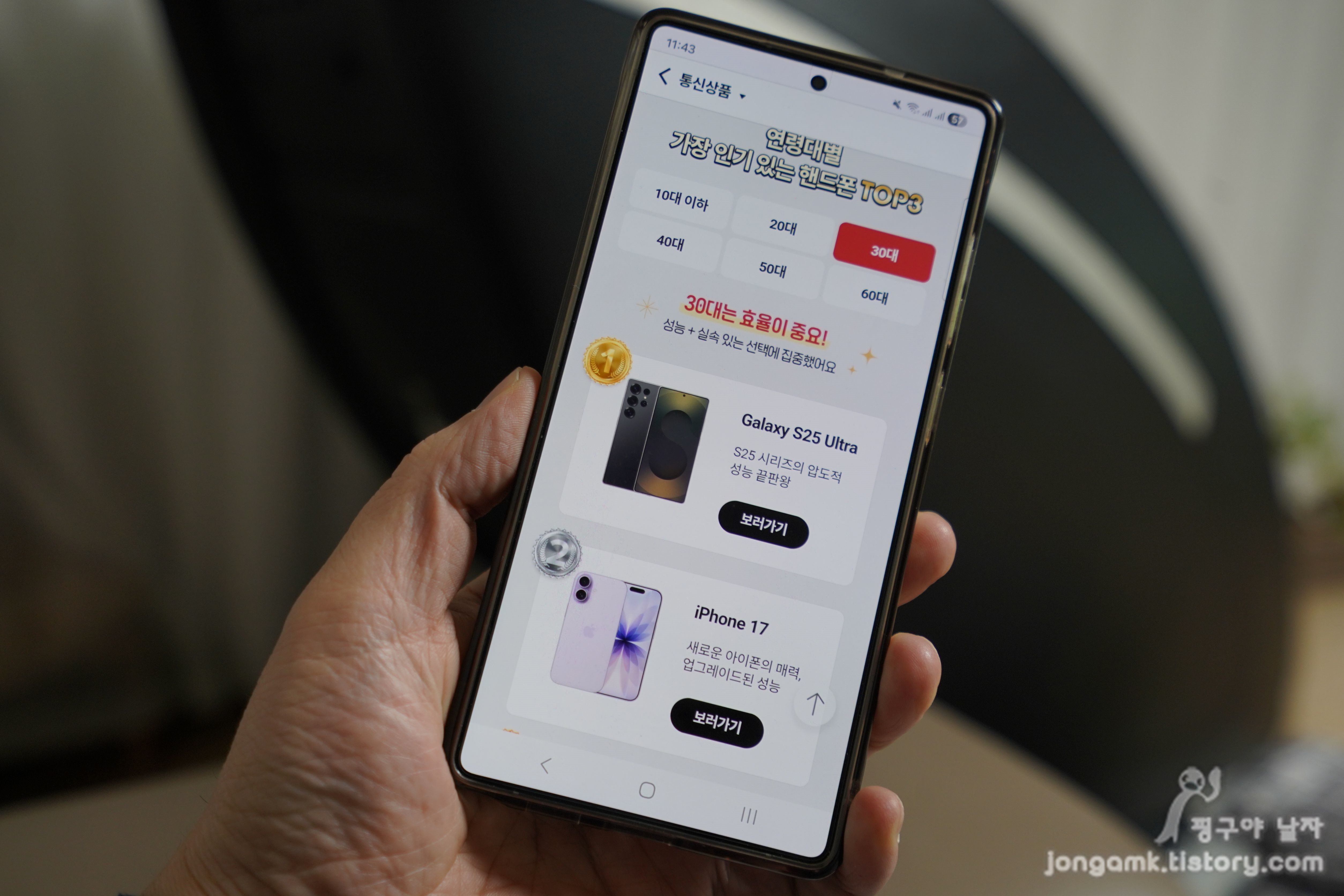 또한 ‘요금’이 아닌 ‘사람’을 보게 만드는 기획 KT닷컴 베스트 어워즈 기획전은 단순한 판매 행사가 아닙니다. 이 기획전의 핵심은 사람들은 어떤 스마트폰을 선택했을까?라는 질문으로 시작합니다. 특히 연령대별 선호 스마트폰을 한눈에 보여준다는 점에서 이 기획은 정보를 넘어 재미와 호기심을 동시에 자극했습니다.