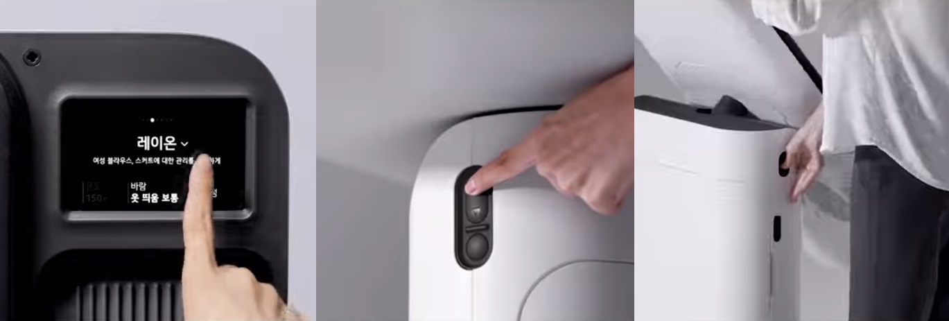 조작과 이동의 편의성도 고려했는데 전자식 버튼으로 스타일링 보드의 높낮이를 조절할 수 있으며 보드에 탑재된 4.3인치 LCD 터치 디스플레이를 통해 스팀 온도와 바람 세기 그리도 다림 코스 선택이 가능합니다. 하단에는 4개의 바퀴를 적용해 집 안 어디서나 이동하며 사용할 수 있는게 추가된 장점입니다.