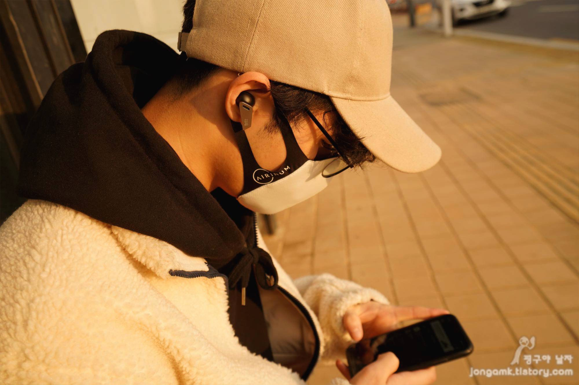 참고로 오른쪽 이어폰의 MFB버튼을 짧게 2번 누르면 재생/일시정지, 짧게 3번 누르면 다음트랙 이동이 됩니다. 전화가 오면 받기와 끊기를 할 때는 좌우 MFB버튼을 짧게 2번 누르면 되어 너무 편했어요. 한쪽에서 받기와 끊기가 있으면 헷갈리고 불편하거든요.