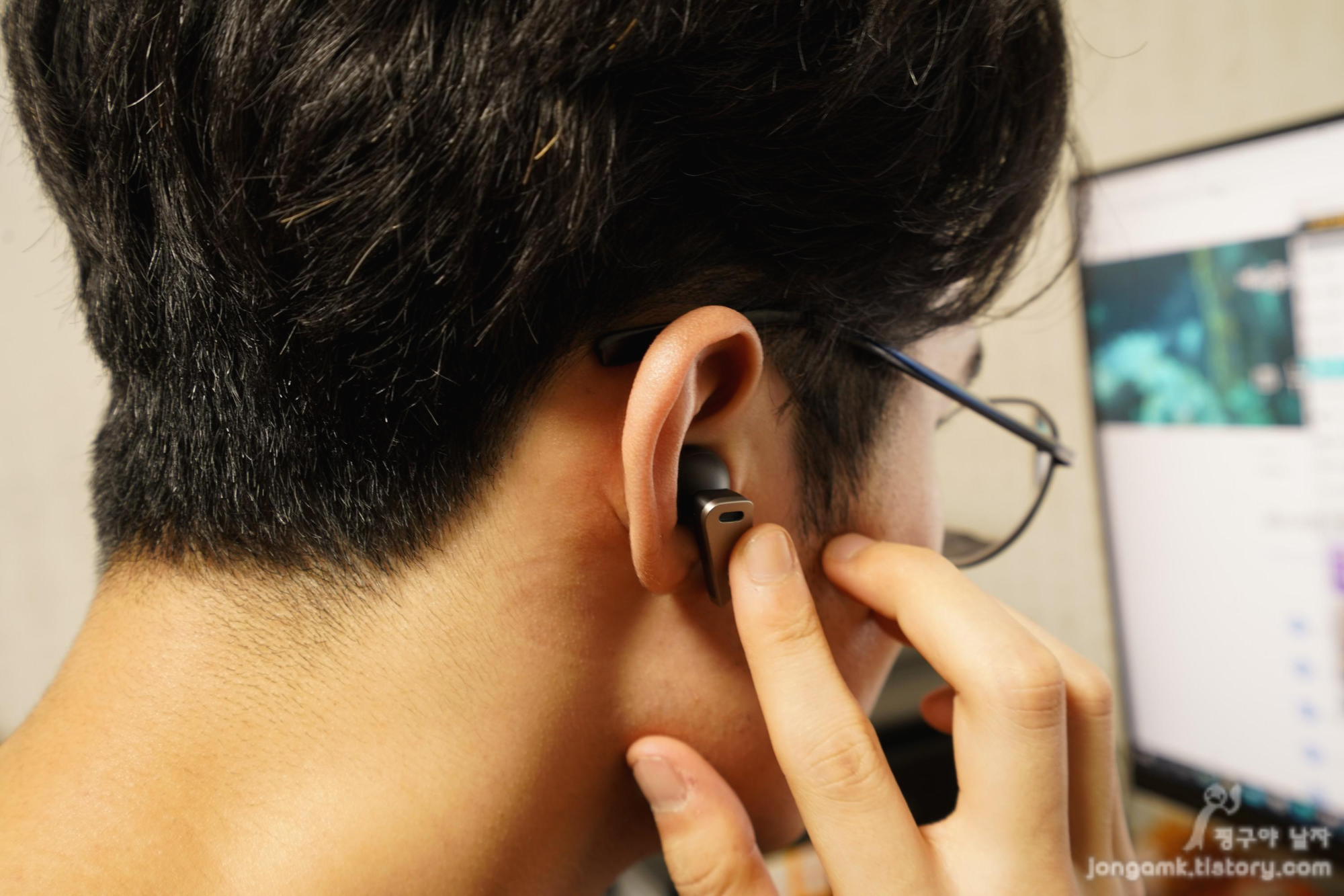 브리츠 블루투스 이어폰 어쿠스틱ANC3을 귀에 장착해 보니 생각이상으로 안정감이 있었습니다. 혹시라도 불편하면 여분의 이어팁으로 교체하면 되지 않을까 싶네요.