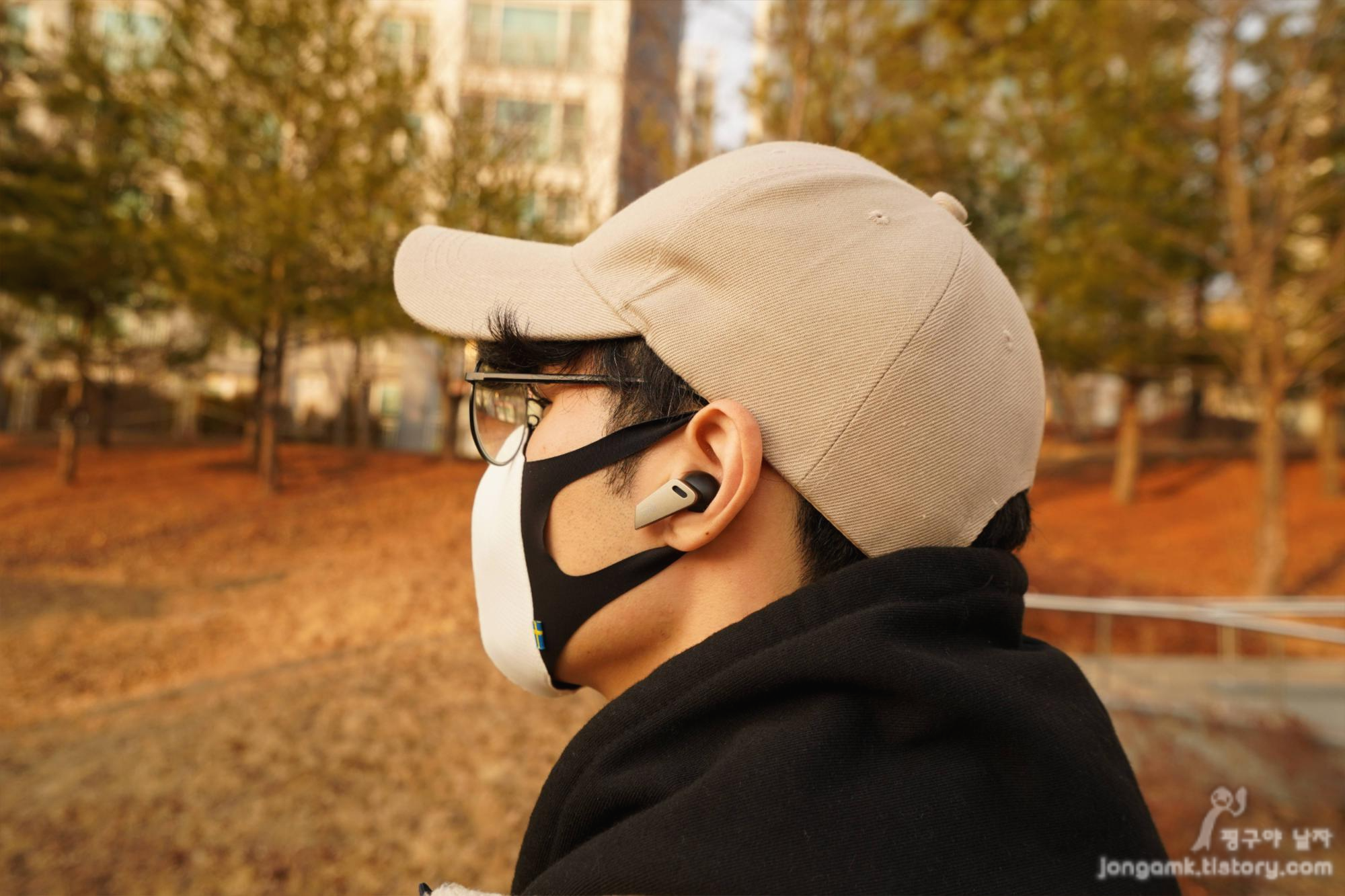 최신 블루투스 5.0를 사용하며 하이브리드 노이즈 캔슬링을 지원하는데요. 주변소리듣기와 게임모드 기능도 제공해 일반 무선이어폰과 차별화하였습니다. 하이브리드 노이즈 켄슬링 기능으로 좀 더 사운드에 집중할 수 있었지만 완벽한 차음 정도는 아니었습니다.