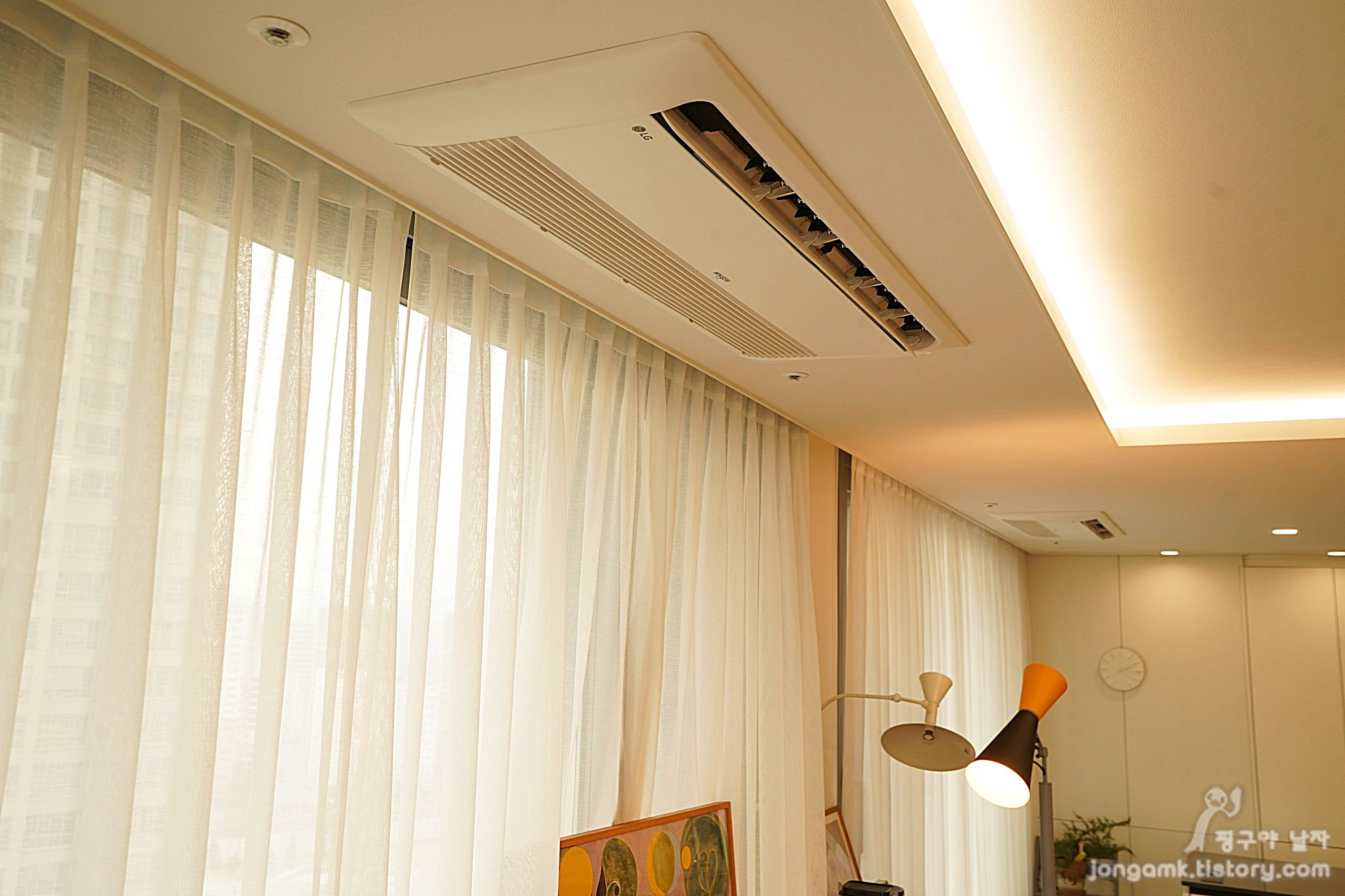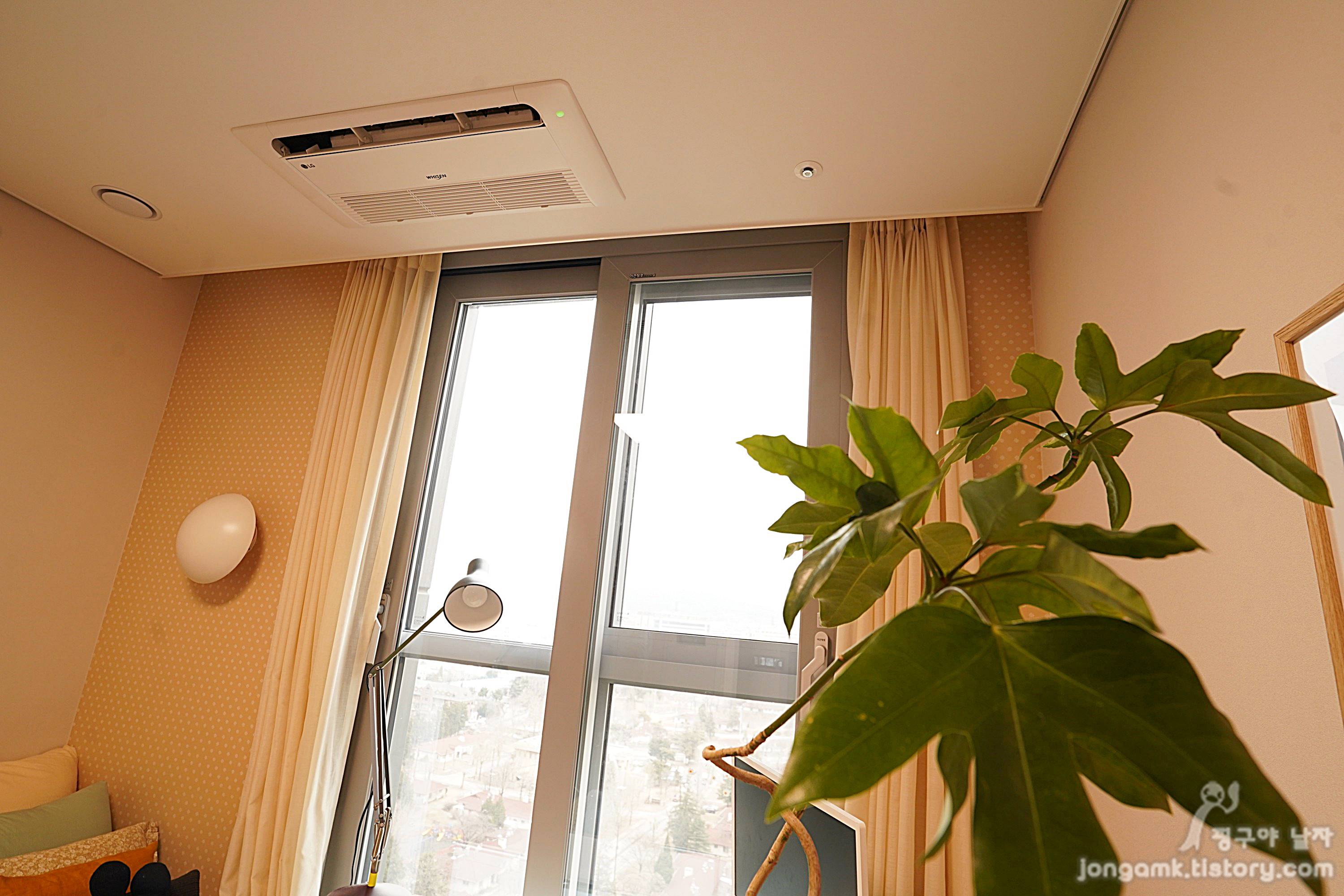 LG 휘센 시스템에어컨은 실외기 1대로 방마다 사용할 수 있어 공간활용에 아주 유리해 매력적이죠. 그래서 거실은 물론 각 방마다 인테리어에도 아주 유리한 것이 간과했던 매력이었습니다. 생활패턴에 따라서 에어컨 종류를 선택하면 되지만 스탠드에어컨과 비교해도 크게 차이가 나지 않더라구요.