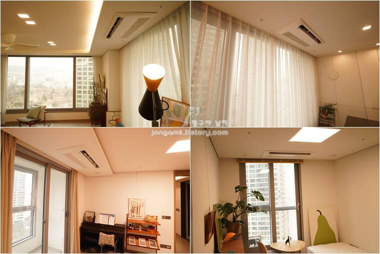 시스템 에어컨이 장착된 거실을 보면서 좀 더 넓어 보이는 효과가 있습니다. 심리적으로도 공간이 넓어 보이면 좀 더 시원해 보이는 느낌도 있지 않을까 싶기도 해요. 무엇보다 거실의 인테리어가 예쁜 집을 보면 시스템에어컨이 한 몫을 한다고 합니다. 실제로 봐도 그렇구요.