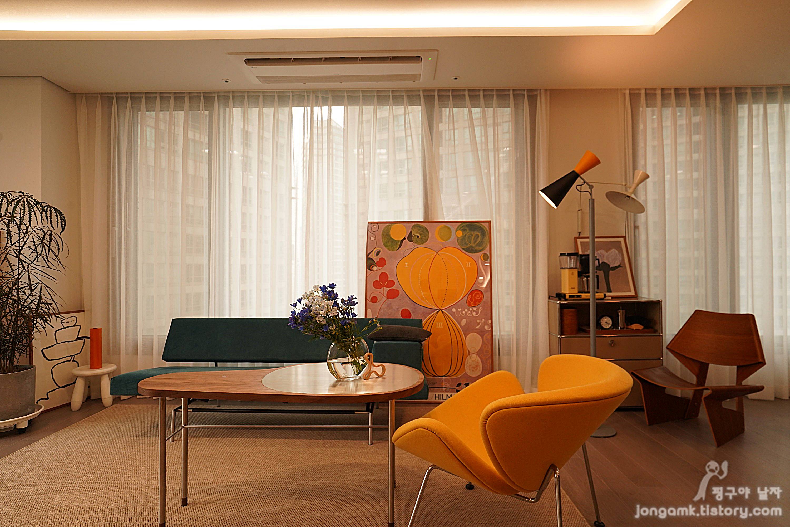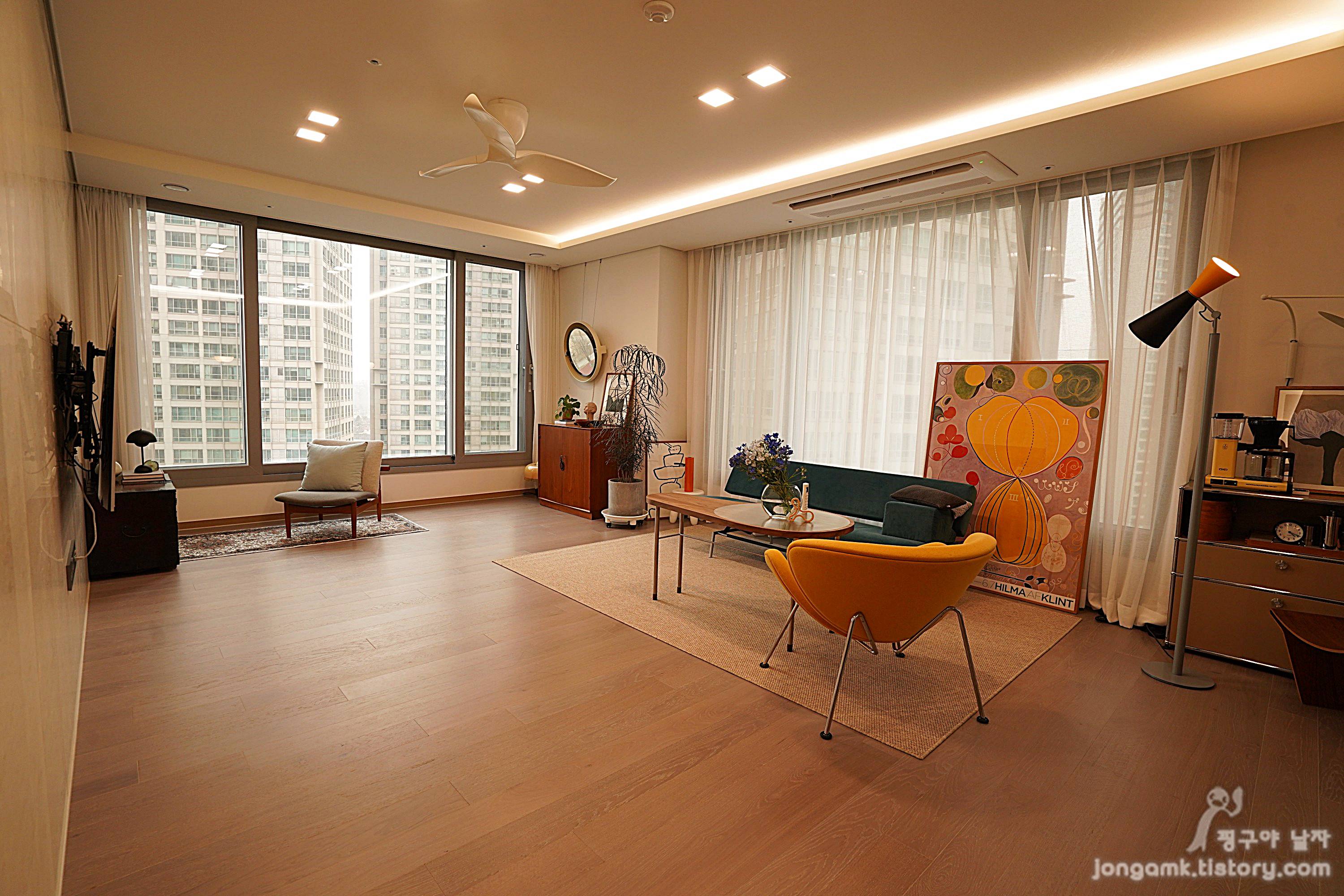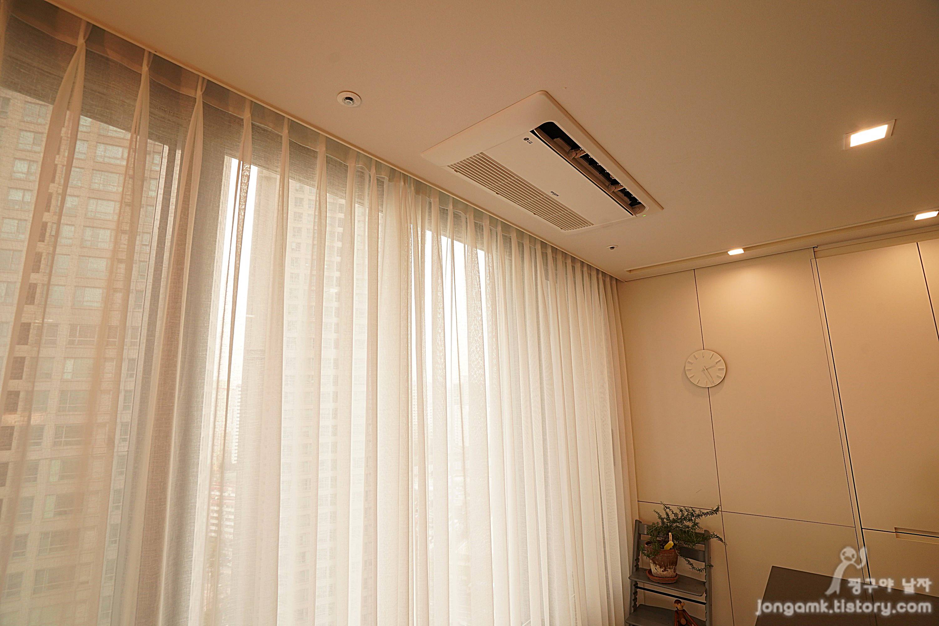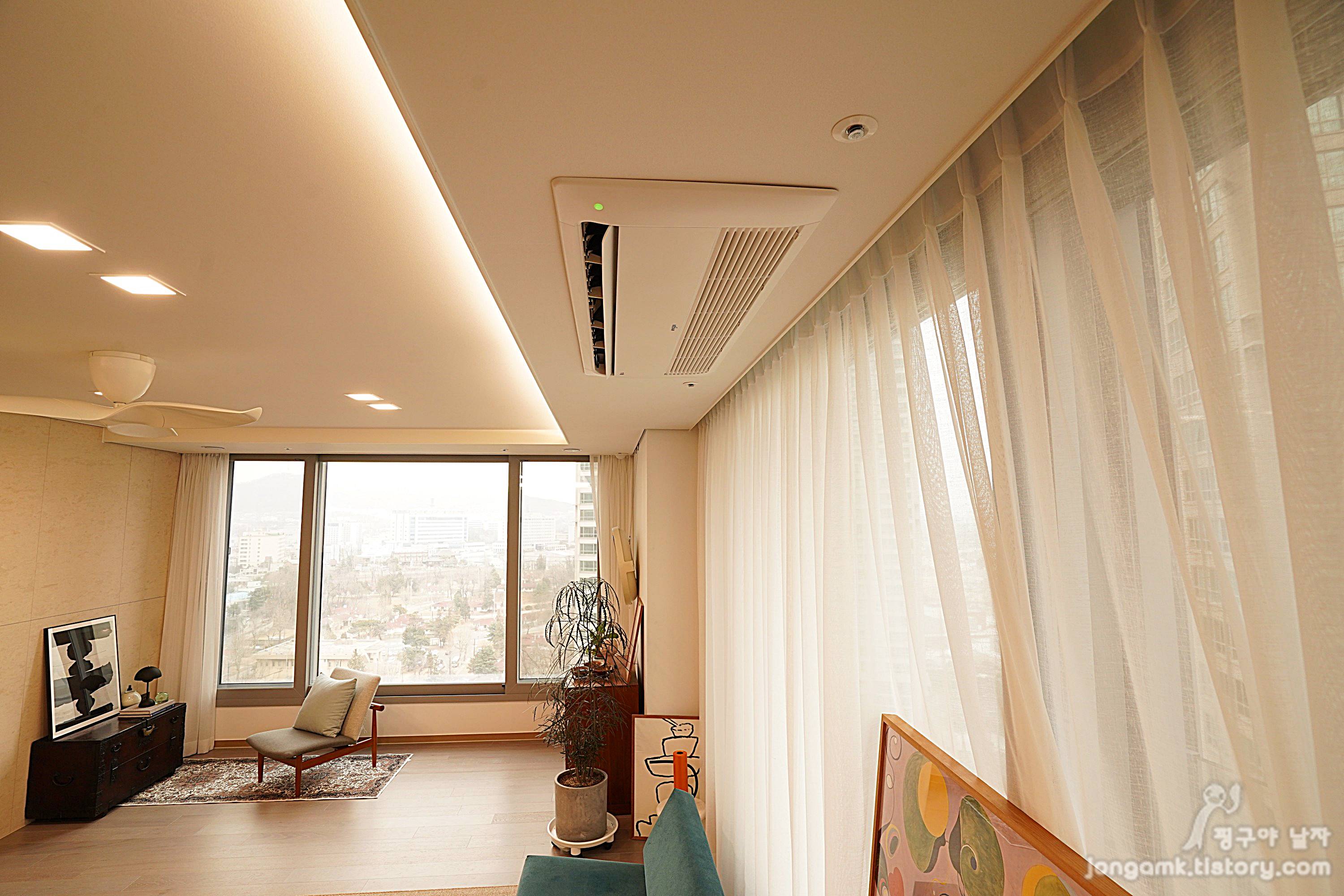 시스템 에어컨이 장착된 거실을 보면서 좀 더 넓어 보이는 효과가 있습니다. 심리적으로도 공간이 넓어 보이면 좀 더 시원해 보이는 느낌도 있지 않을까 싶기도 해요. 무엇보다 거실의 인테리어가 예쁜 집을 보면 시스템에어컨이 한 몫을 한다고 합니다. 실제로 봐도 그렇구요.
