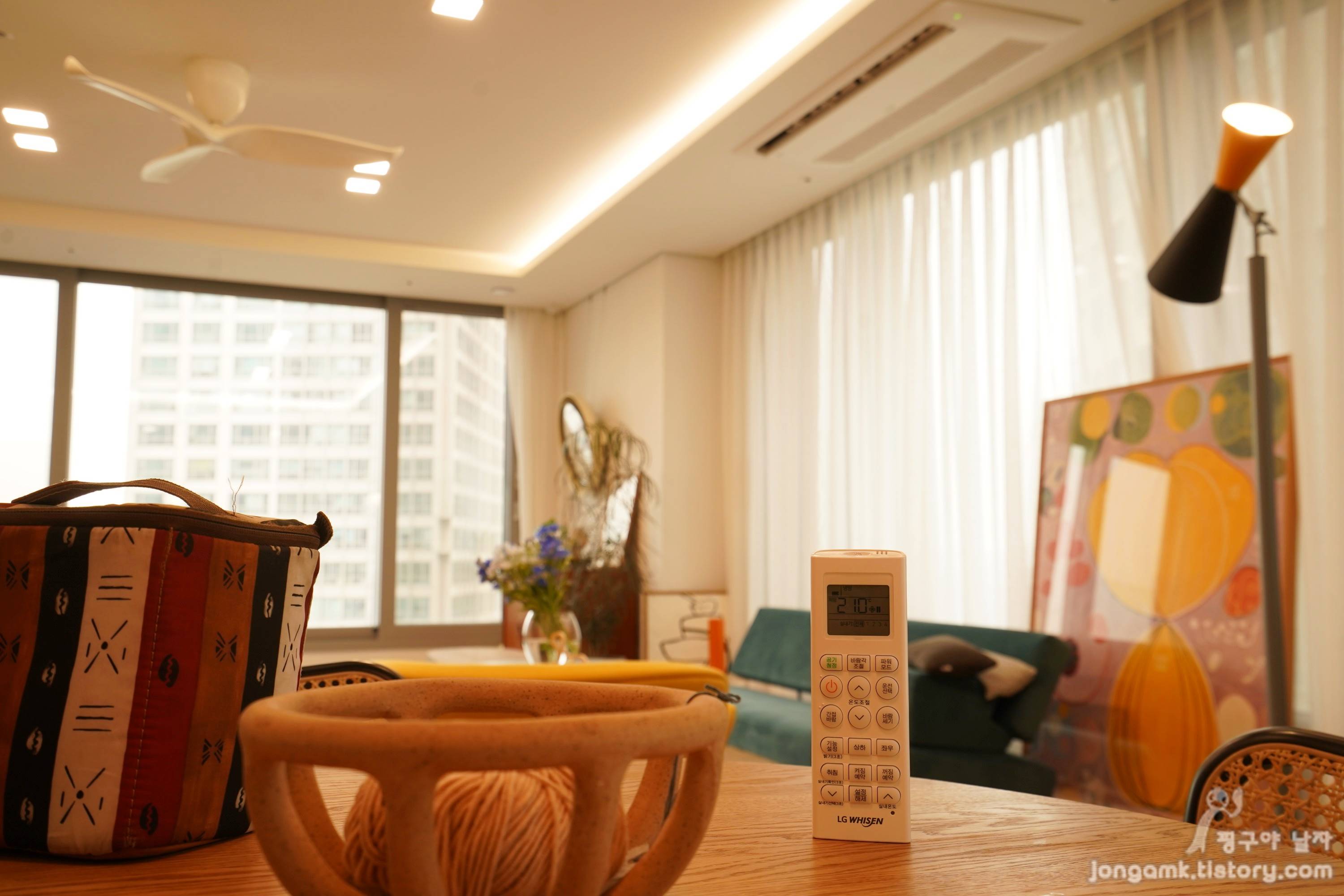 LG 휘센 시스템에어컨은 실외기 1대로 방마다 사용할 수 있어 공간활용에 아주 유리해 매력적이죠. 그래서 거실은 물론 각 방마다 인테리어에도 아주 유리한 것이 간과했던 매력이었습니다. 생활패턴에 따라서 에어컨 종류를 선택하면 되지만 스탠드에어컨과 비교해도 크게 차이가 나지 않더라구요.
