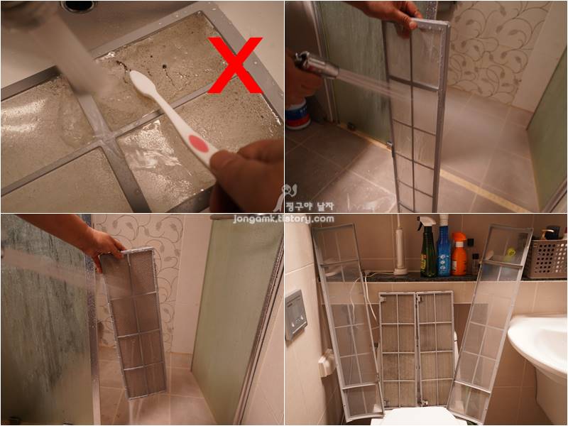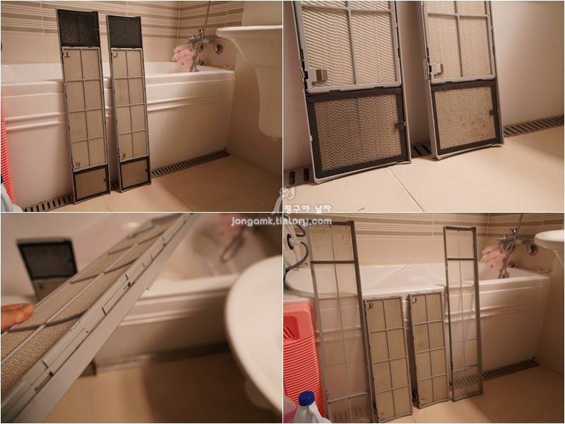 혹시 필터를 칫솔로 물청소를 하시면 3박4일을 청소해도 끝나지 않을 겁니다. ㅋㅋ 수압이 센 샤워기로 물을 뿌리면 필터에 뭍은 먼지를 깔끔하고 편하게 청소를 할 수 있습니다. 세척한 필터는 서늘한 곳에서 건조하는 게 좋습니다.