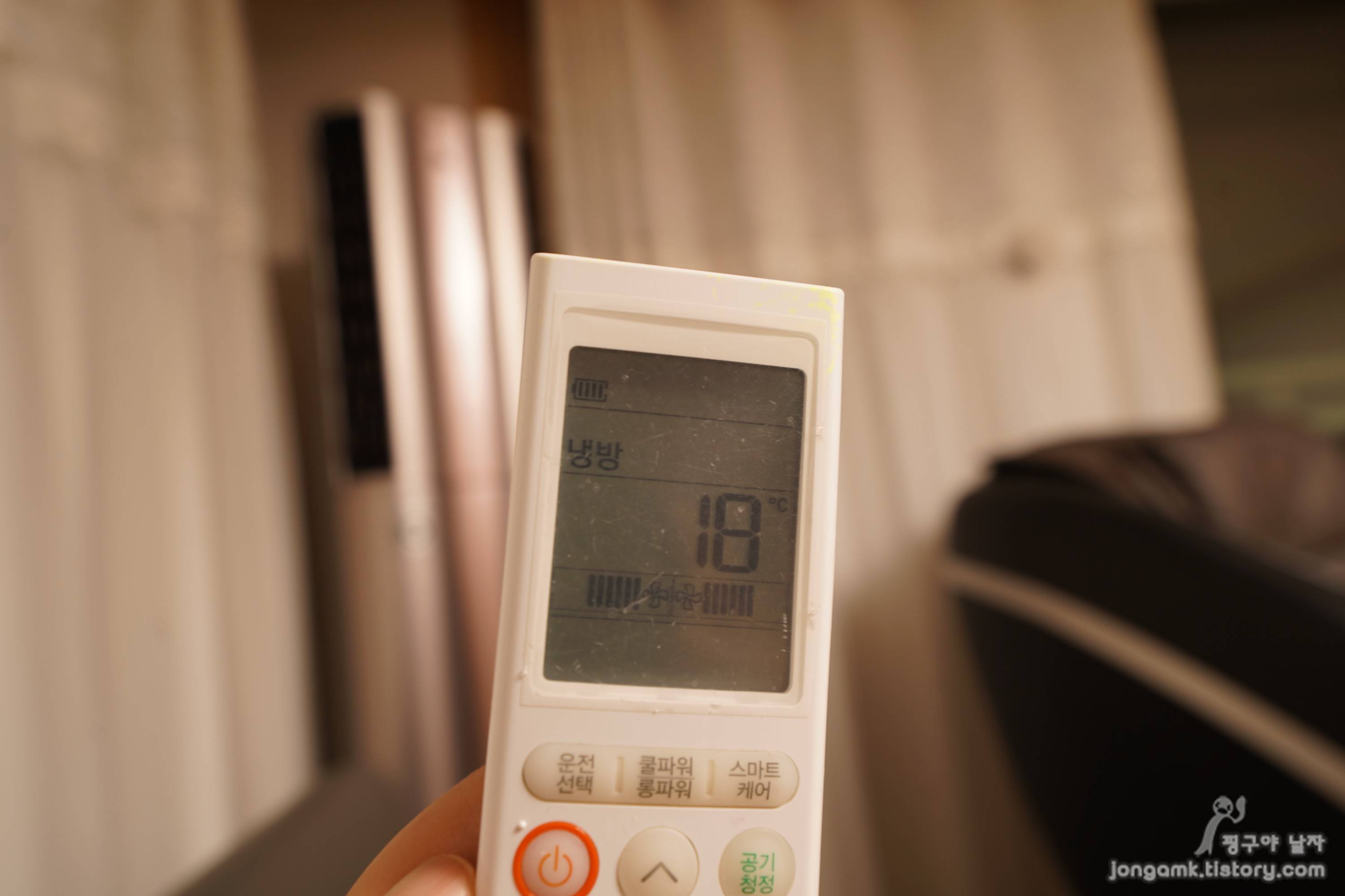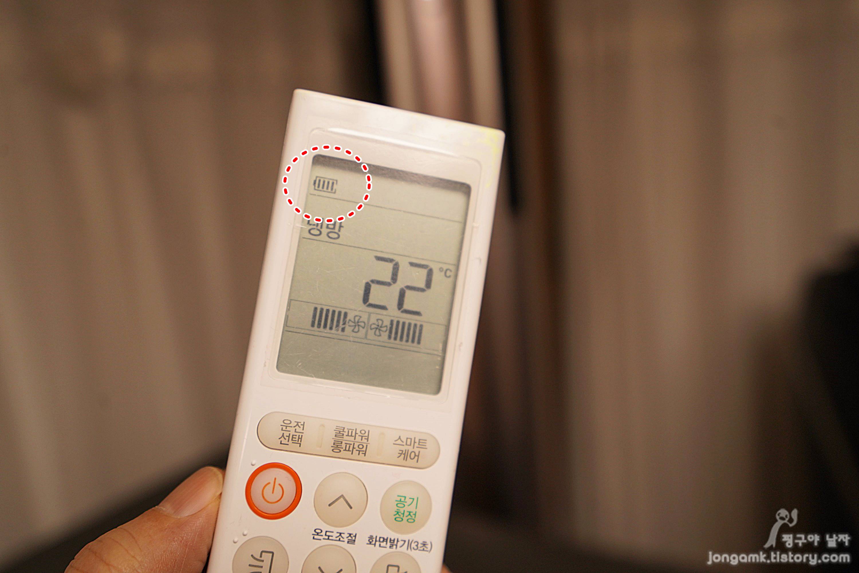 전원 공급이 제일 중요한데요. 인공지능 스스로 에어컨(FQ19P7DPAN)은 에어컨에 전원코드가 있는 것이 아니라 실외기에 있으니 제대로 꽂여 있는지 확인해 보면 좋겠죠. 그리고 리모컨의 건전지 배터리양은 충분한지 혹시 건전지 부분에 누액이 흐르지 않았는지 후면 커버를 련고 확인해 보면 더 좋습니다.