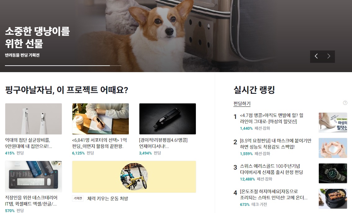 카테고리 별로 관심이 가는 펀딩 제품을 한 눈에 볼 수 있어서 좋습니다. 때로는 목표 금액에 도달하지 못하는 제품도 있을 수 있습니다. 와디즈는 펀딩금 반환정책을 운영하고 있어 기존 펀딩 프로젝트의 스토리와 상이하거나, 배송일이 지나도 펀딩 제품을 수령하지 못한 경우도 반환을 받을 수 있습니다. 기업의 입장에서는 시제품 출시 전에 개선점을 찾 수 있는 좋은 기회를 얻게 되는 것입니다.