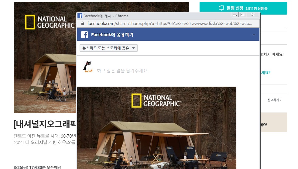 이럴 때는 알림신청을 하면 됩니다. 요즘 핫한 캠핑/반려동물/패션 카테고리 중 관심이 있는 코지백과 더 오리지널 캐빈 하우스를 살펴보았는데요. 코지백은 117명이 예약 신청을 했고 캐빈 하우스는 무려 3,478명이나 예약알림을 신청해서 인기가 대단한 것 있죠.
