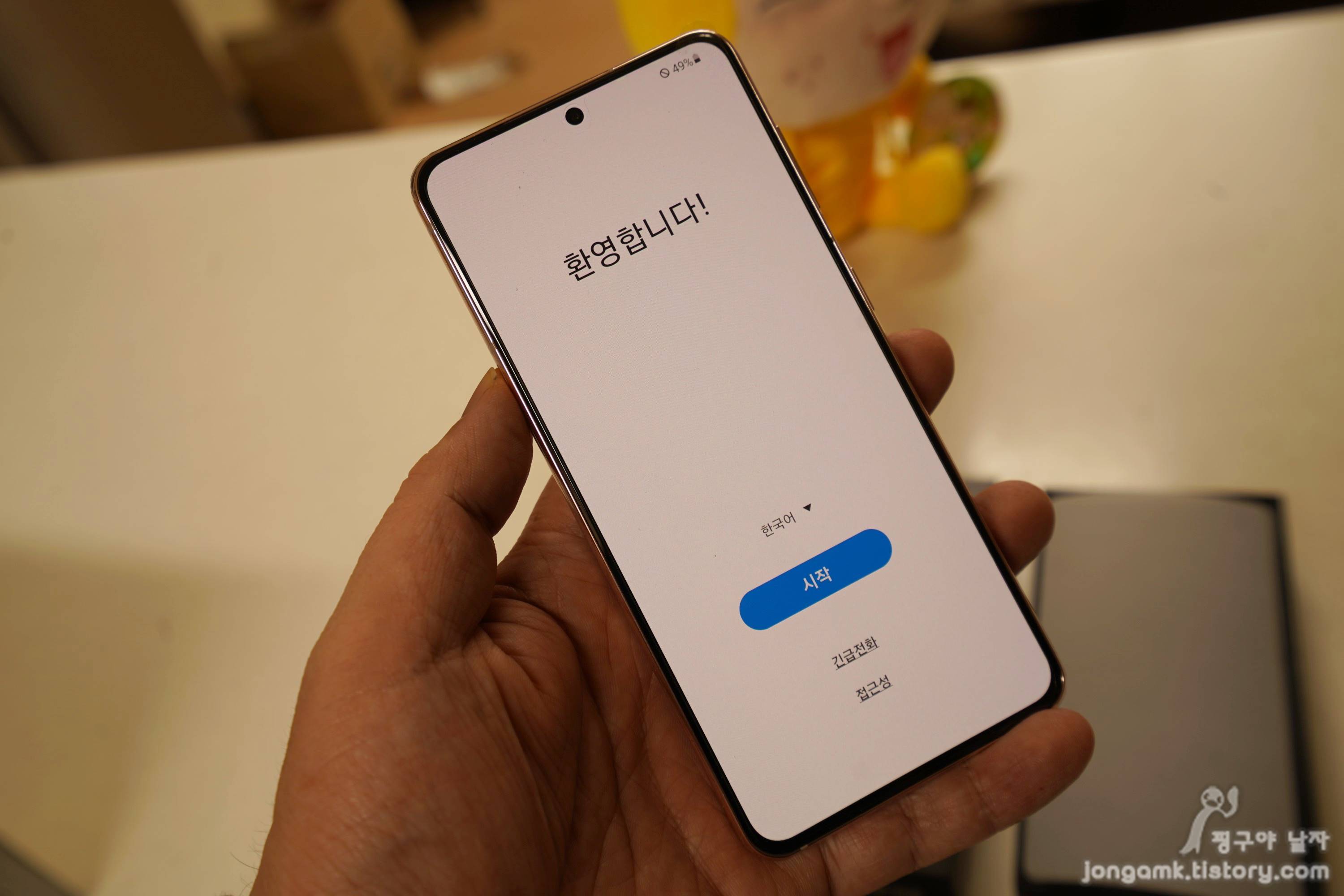전원을 공급하고~ ㅋㅋ 아이폰X를 그만 사용하고 바꾼 폰이라 좀 더 커보였지만 6.7인치 갤럭시S21 플러스가 눈에 계속 아른아른 거리기는 합니다.