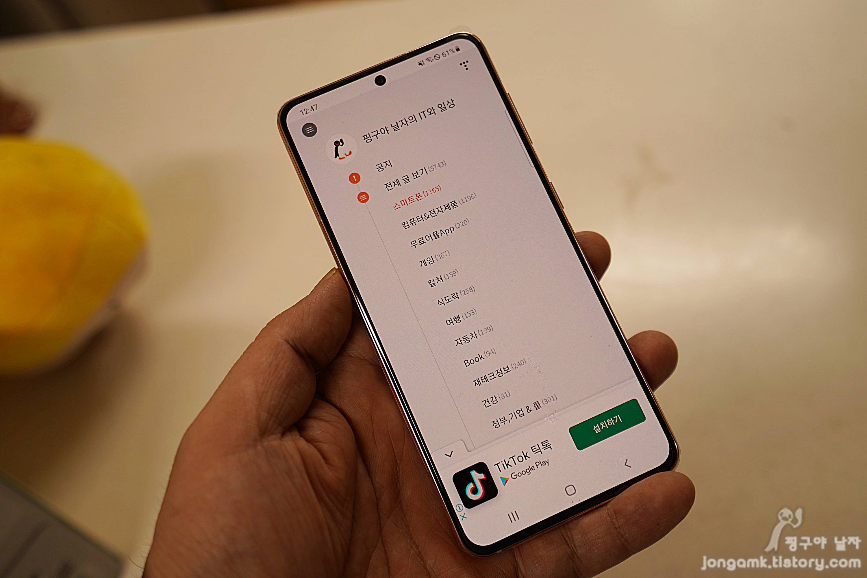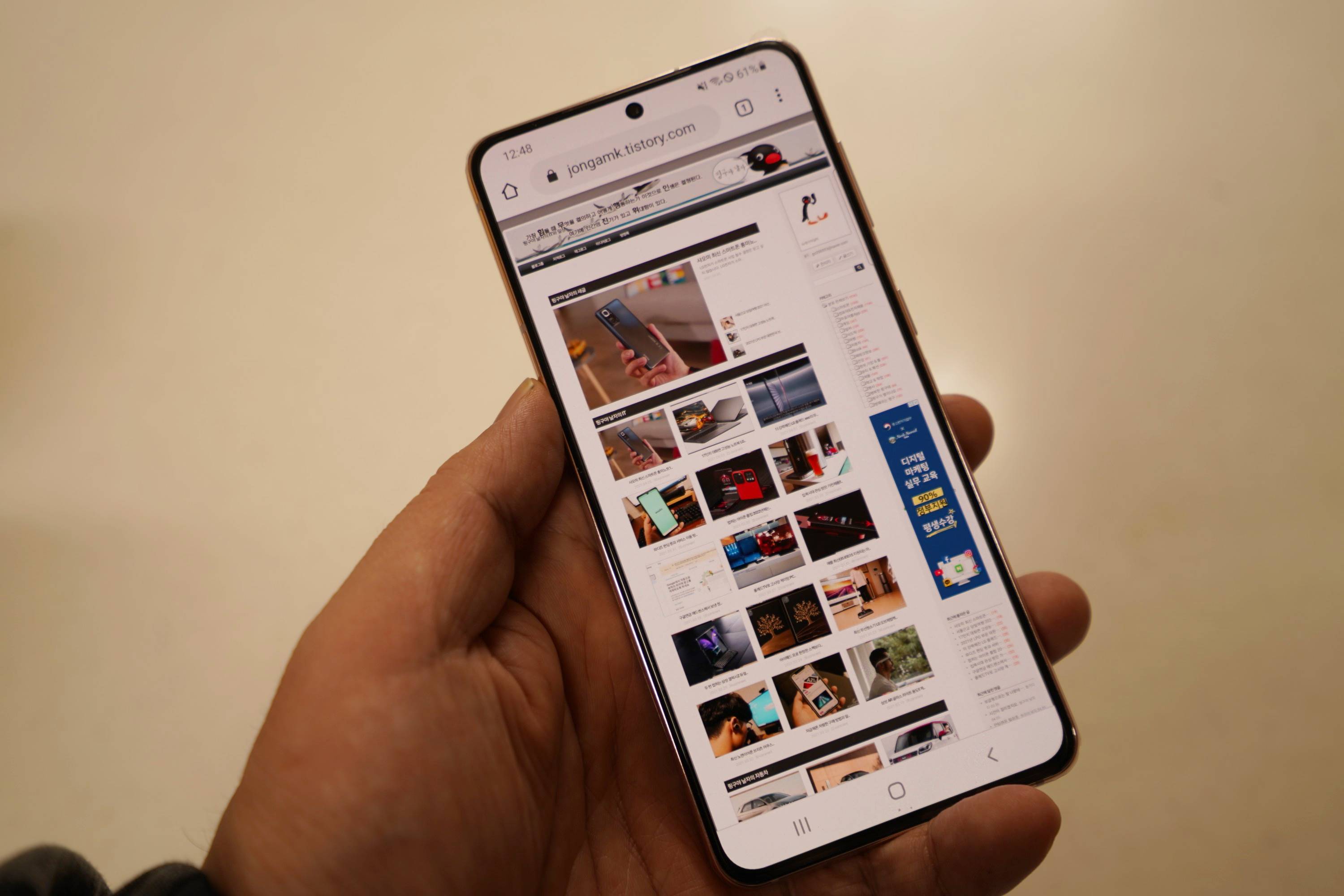 어찌 되었든 갤럭시S21의 사이즈가 6.1인치 이기는 하지만 베젤리스에 가까워져 휴대성은 높고 넓은 화면을 사용할 수 있습니다. 물론 갤럭시S21 보다 더 큰 화면을 사용했던 분이라면 작아보일 겁니다.