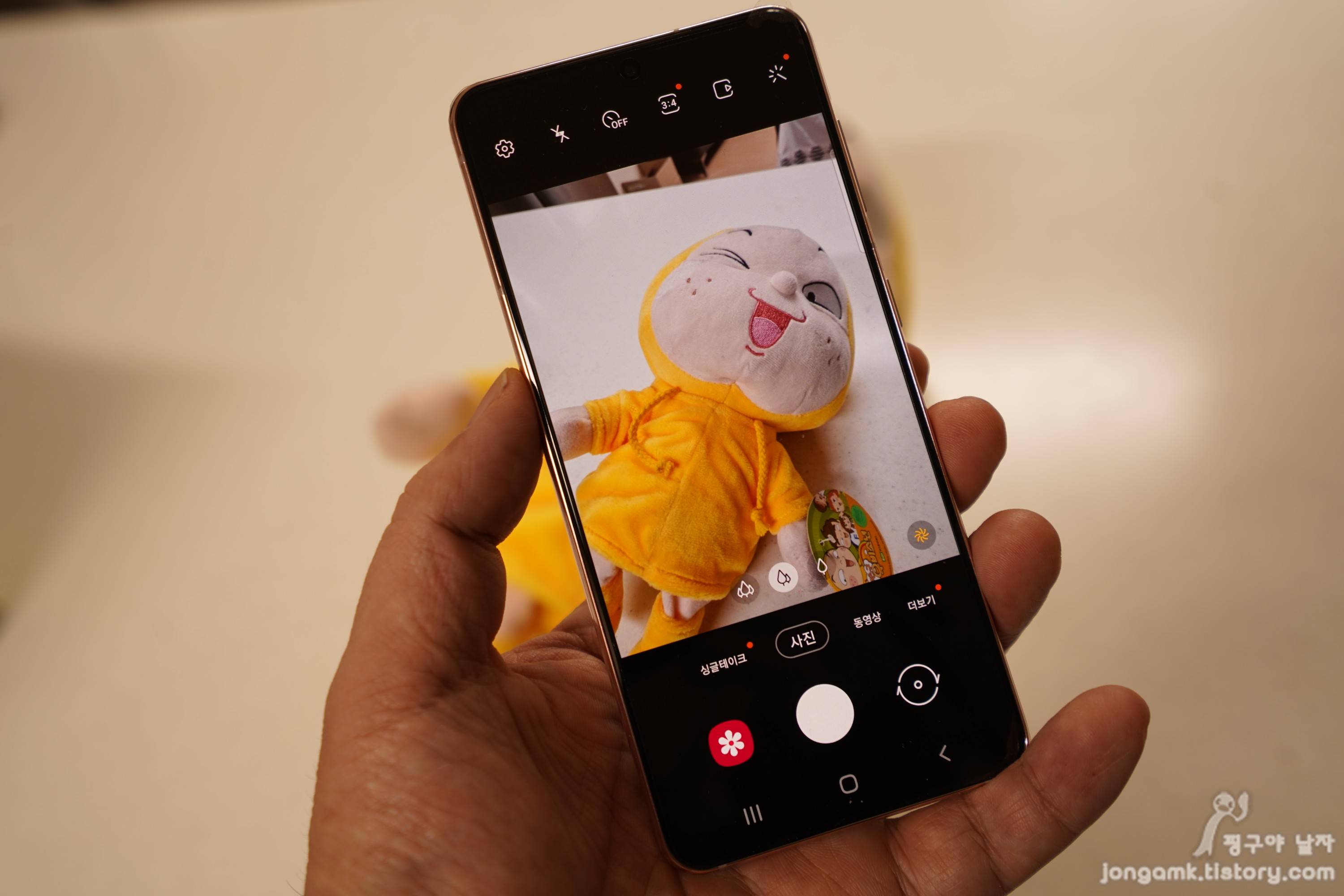 요즘 스마트폰들은 카메라 기능에 많이 신경을 쓰고 있는데요. 갤럭시S21의 후면카메라는 1200만 광각과 초광각, 6400만 망원을 제공하는데요. 디지털 줌은 30배이며 OIS지원으로 선명한 사진을 촬영할 수 있어요.