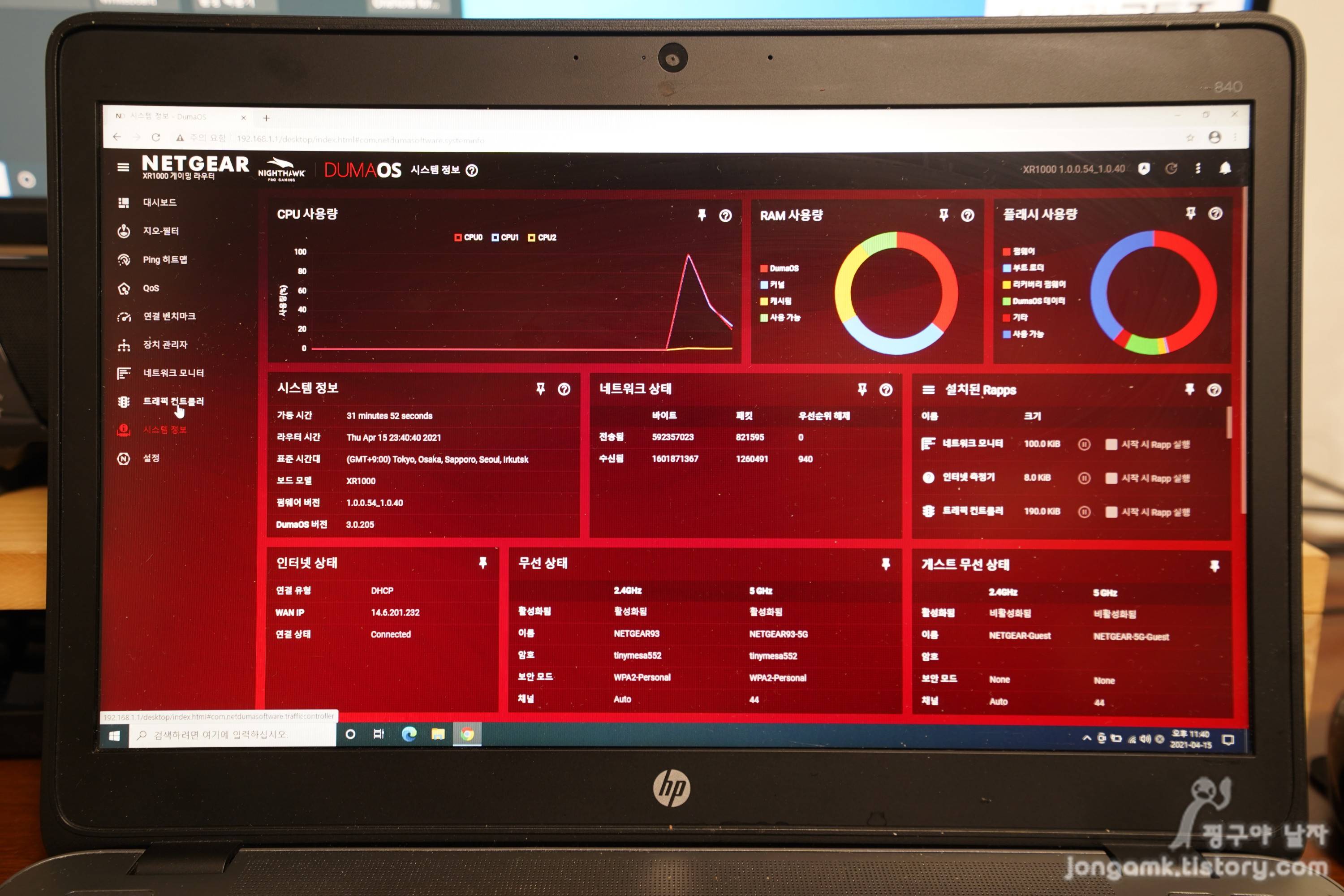 일반 공유기를 사용했을 때와 눈에 보일 정도로 차이는 바로 느껴지지는 못했지만 기존과는 느낌적 느낌의 차이가 있다고 표현하면 애매할까요. ㅋㅋ