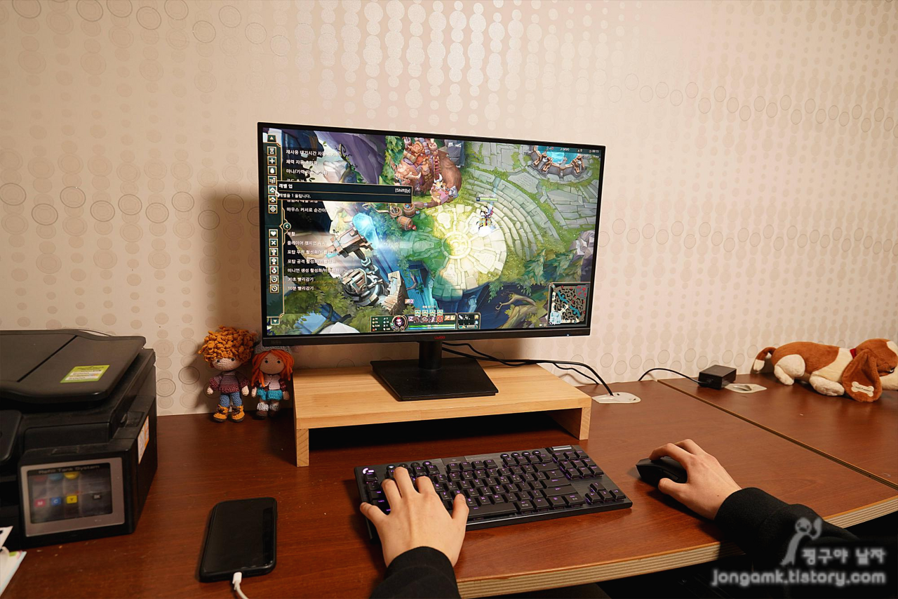 일반 게임보다는 키조작이 많고 영웅들의 스킬 재사용시간도 짧아 스킬샷 타이밍이 중요한 리그오브레전드를 유선으로 연결해 보았어요.