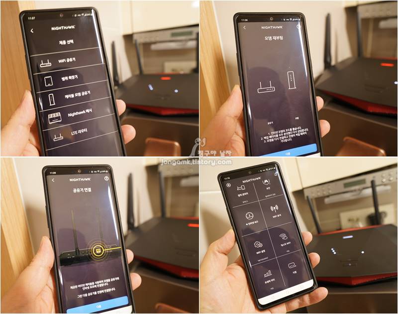 넷기어 와이파이6 게이밍 공유기 XR 1000은 나이트호크 앱(NIGHTHAWK)을 다운로드하여서 스마트폰에 설치하고 화면에서 설명해 주는 대로 따라서 하면 쉽게 사용할 수 있습니다.