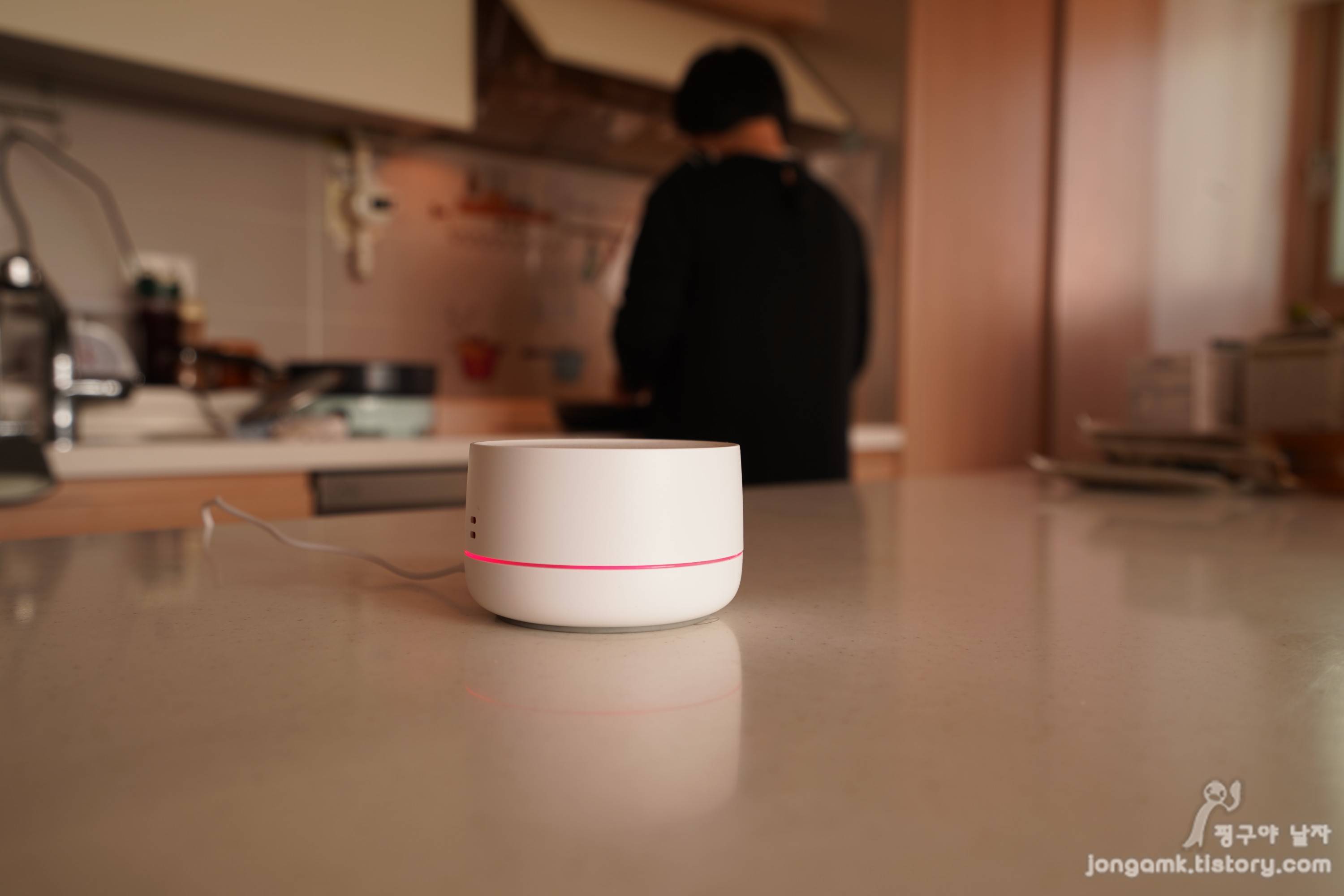 우리는 인공지능 센서를 주방에 설치해 놓고 사용하는데요. 바깥의 오염된 공기도 있지만 주방에서 요리하면 미세먼지가 발생하고 냄새도 거실부터 방까지 옮겨지게 되거든요.