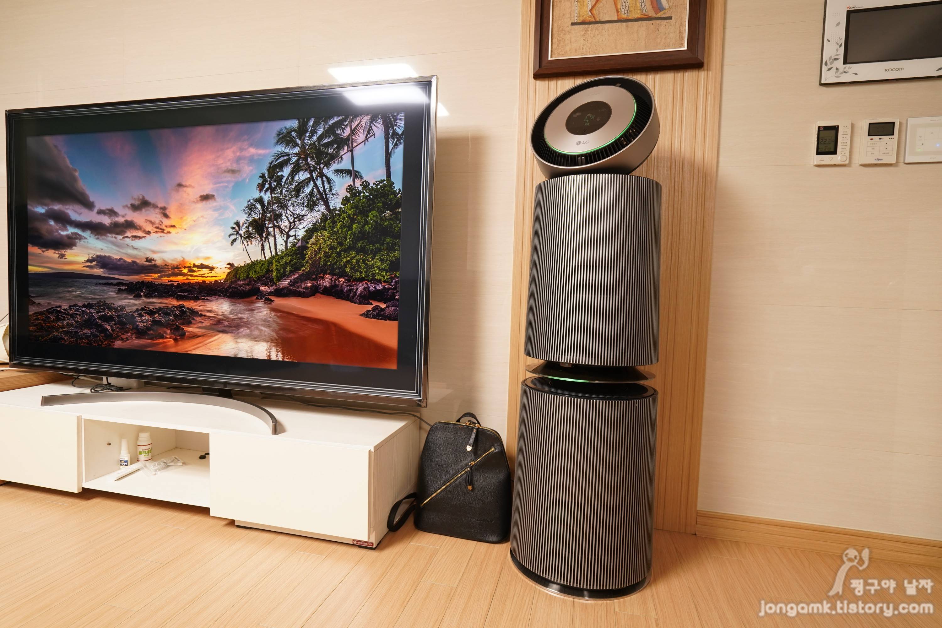 인공지능센서를 탑재한 LG 퓨리케어 360도 공기청정기 알파가 있으니 얼마나 다행인지 몰라요. 그렇지 않으면 용량이 떨어지는 공기청정기를 사용해 다소 불편했을 것 같아요.